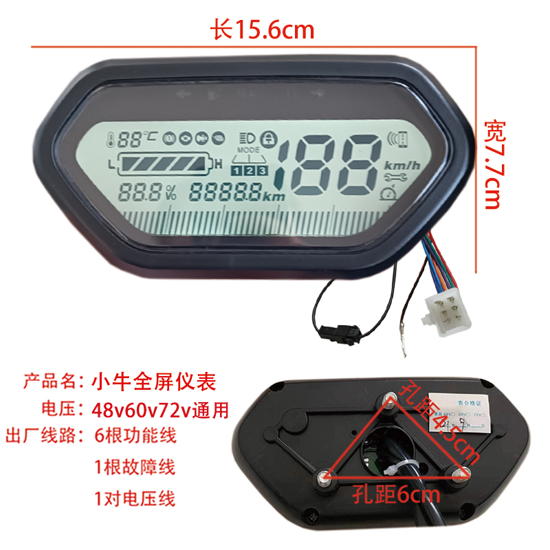 电动车小牛仪表总成液晶仪表盘显示器通用改装表头壳防水一线通