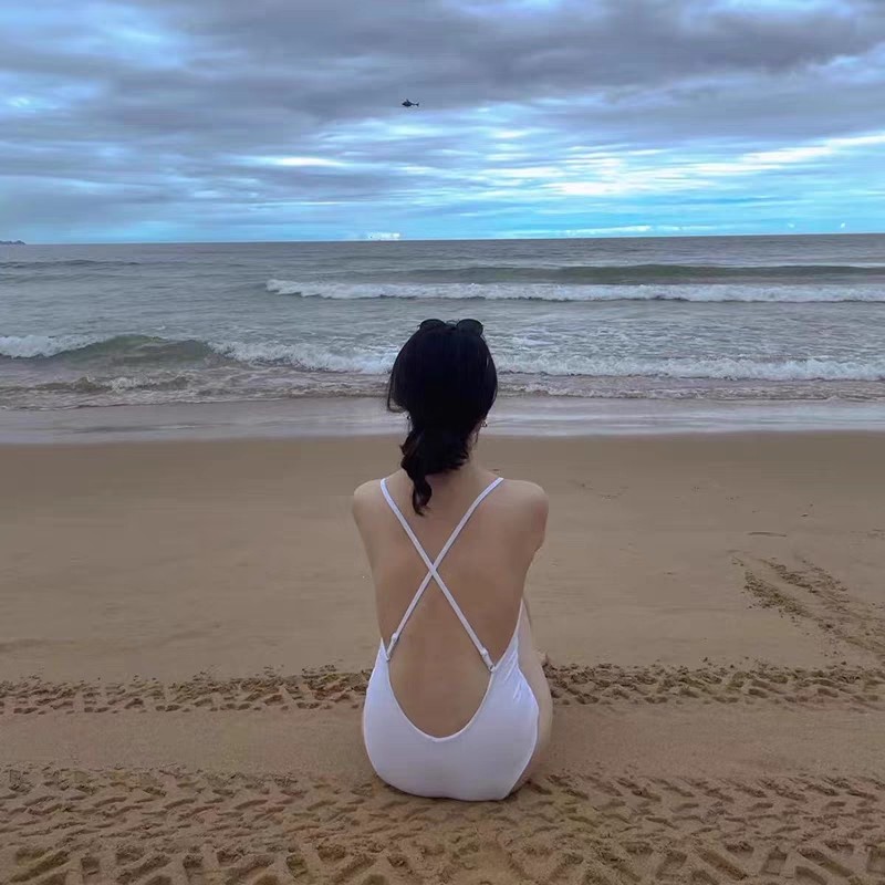明星同款泳衣女黑白色三角连体气质v领性感露背纯欲风简约温泉