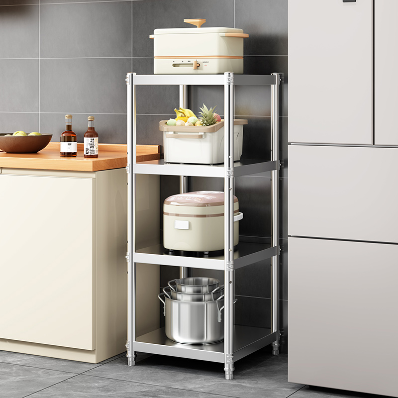 厨房置物架e不锈钢家用落地多层微波炉置物架夹缝收纳层架小锅电