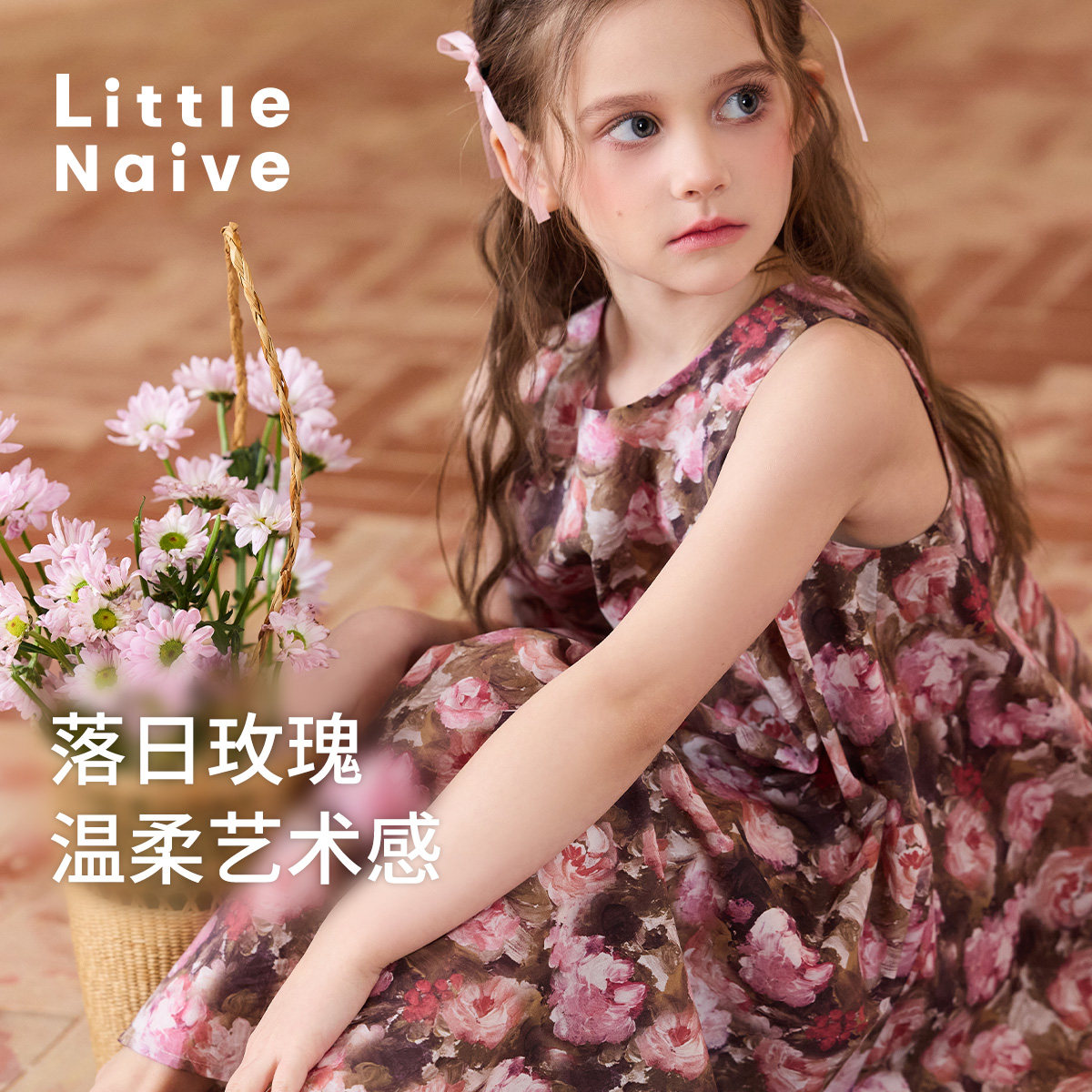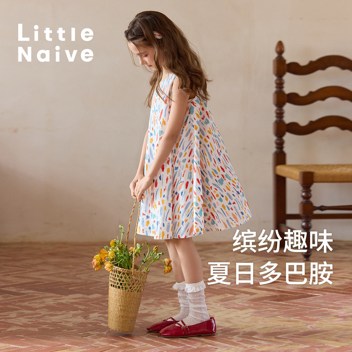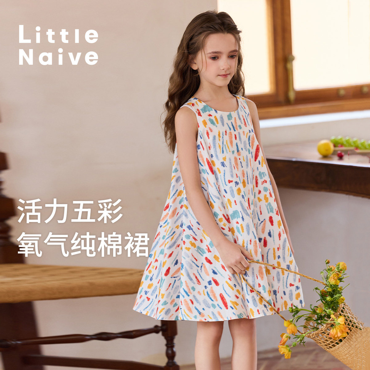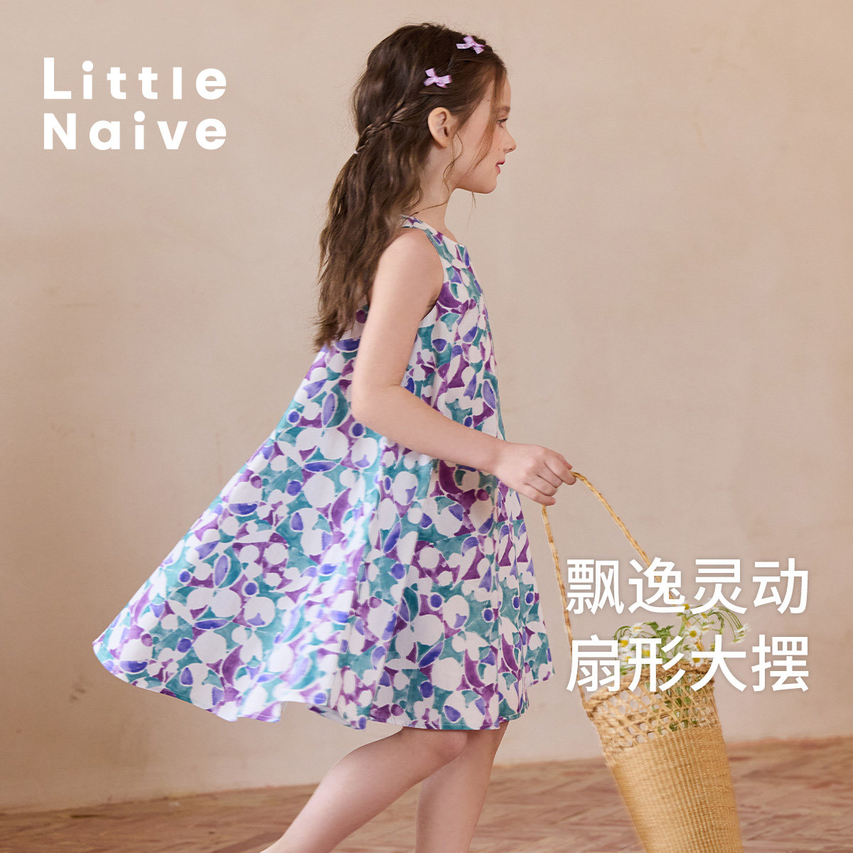 Little Naive儿童碎花无袖连衣裙夏季纯棉宽松裙子女童印花背心裙