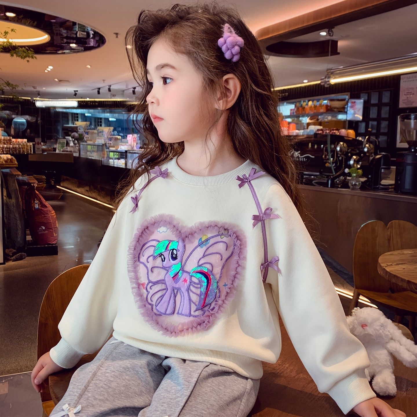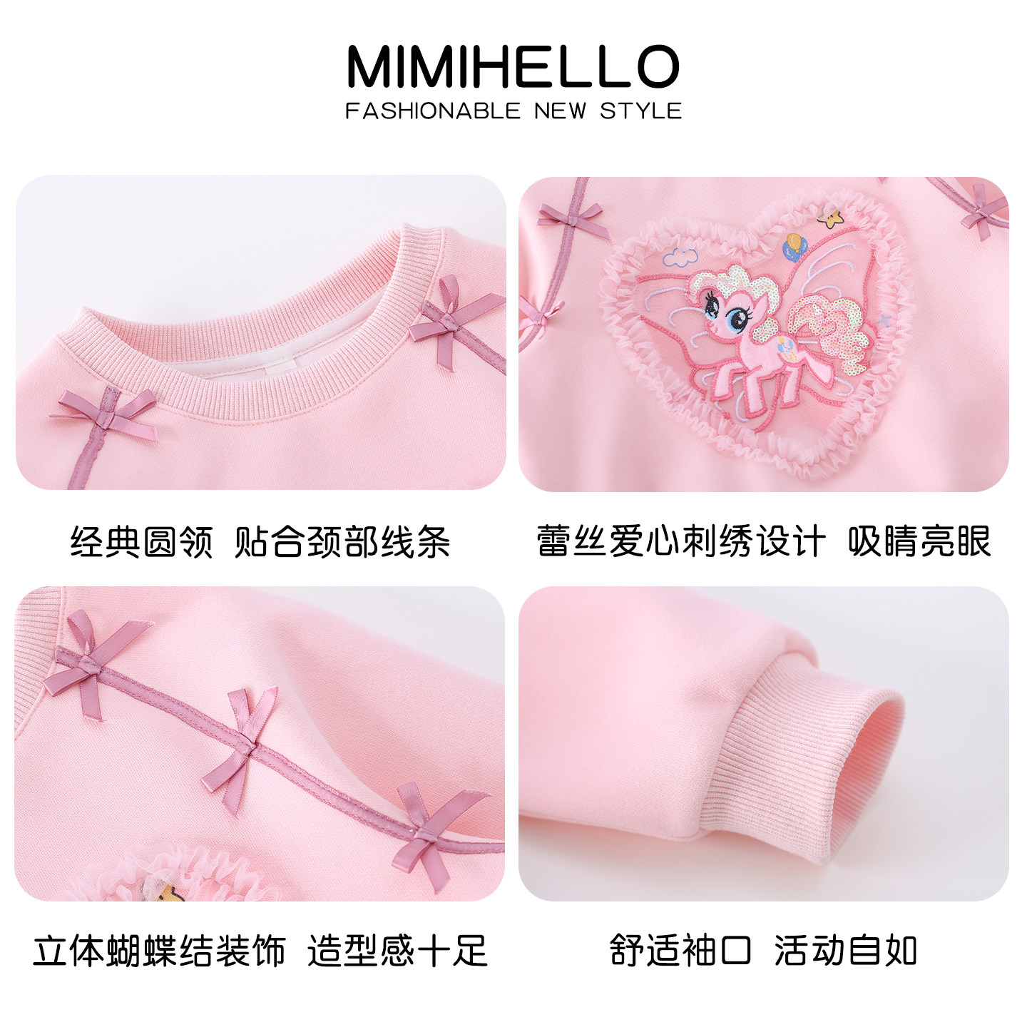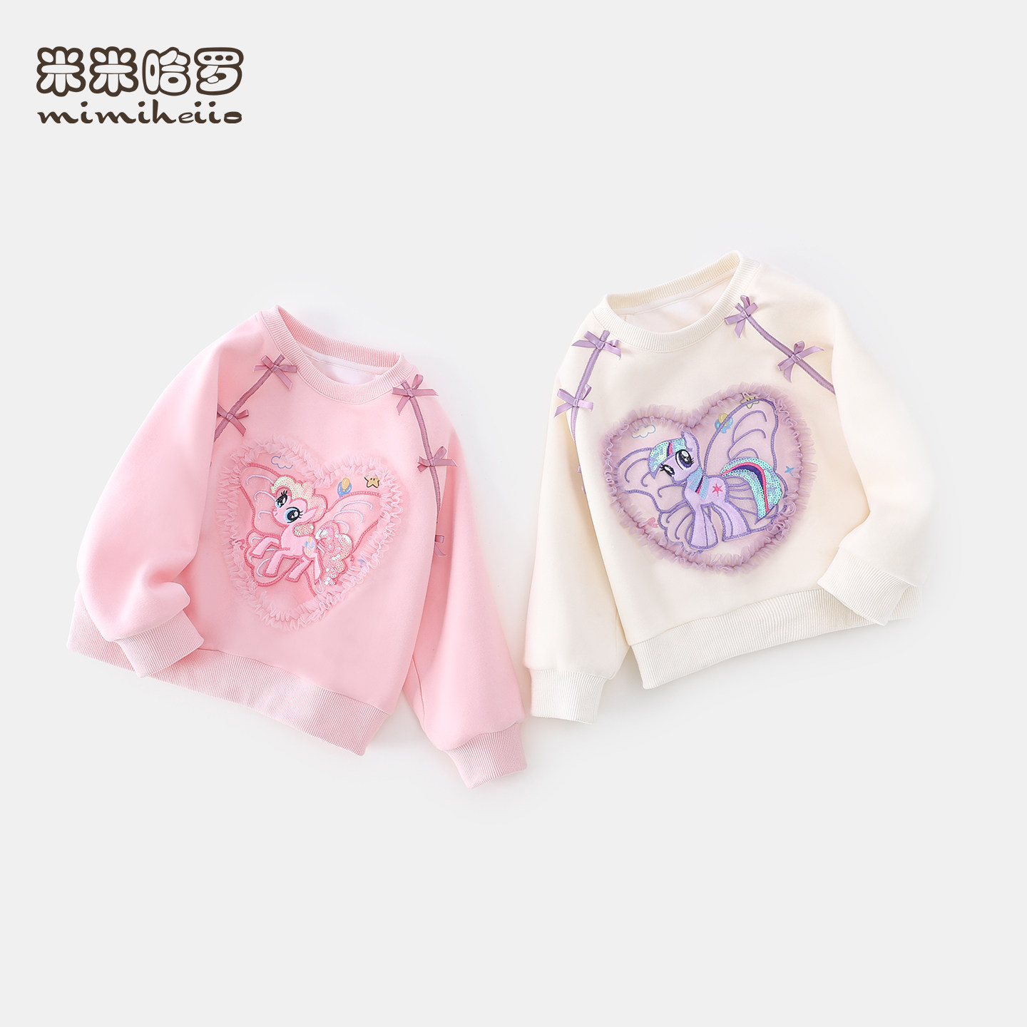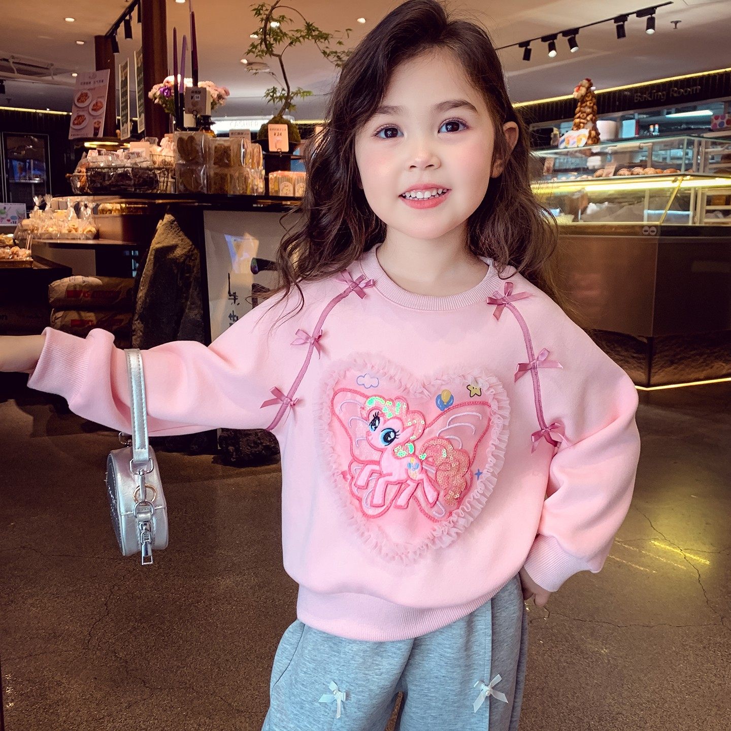 女童卫衣秋冬2025新款儿童韩版花边爱心卡通圆领长袖加绒上衣女孩