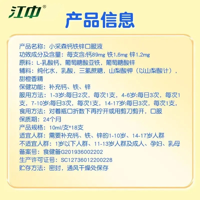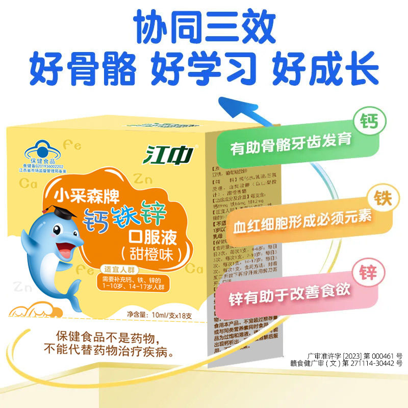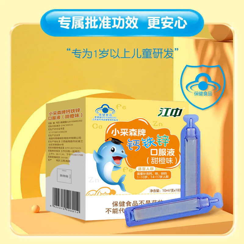 江中正品钙铁锌口服液成长高钙葡萄糖酸锌儿童青少年液体钙甜橙味