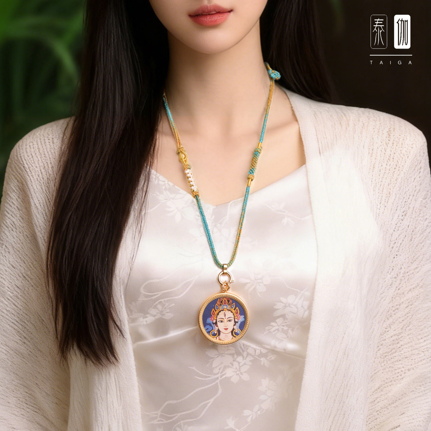 佛牌链唐卡文玩[只此青绿]桃花手工精编吊坠绳花朵羽毛树叶 TG182
