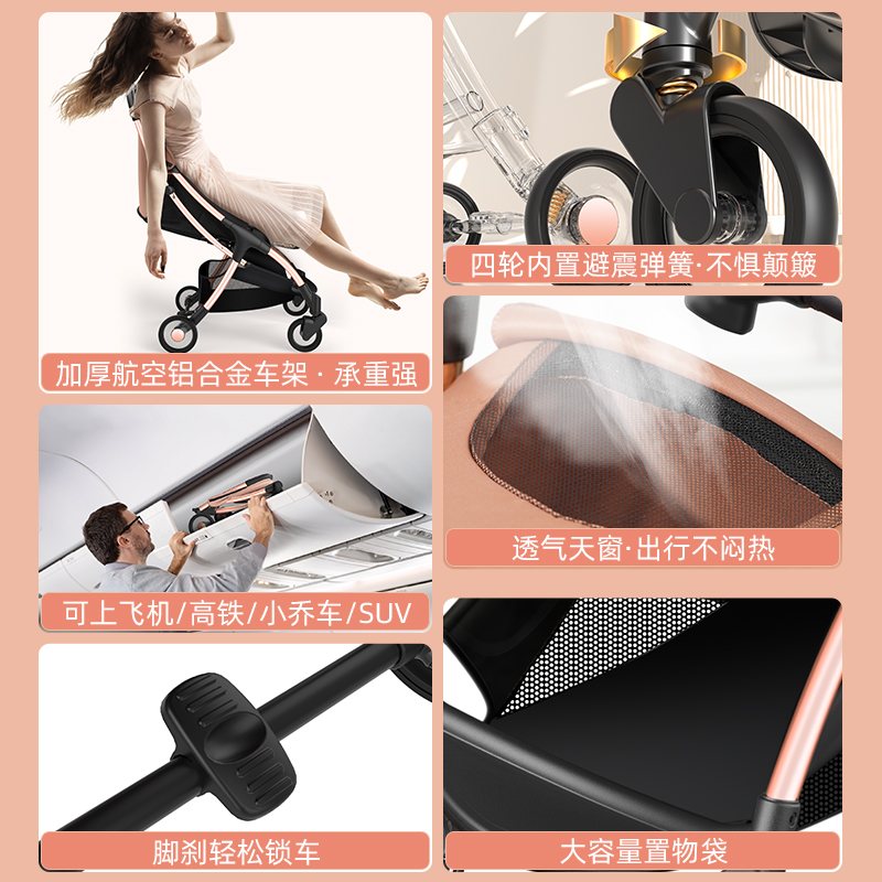 yunbaby孕贝婴儿推车一秒自动收车可坐可躺轻便溜遛娃神器儿童T1Y