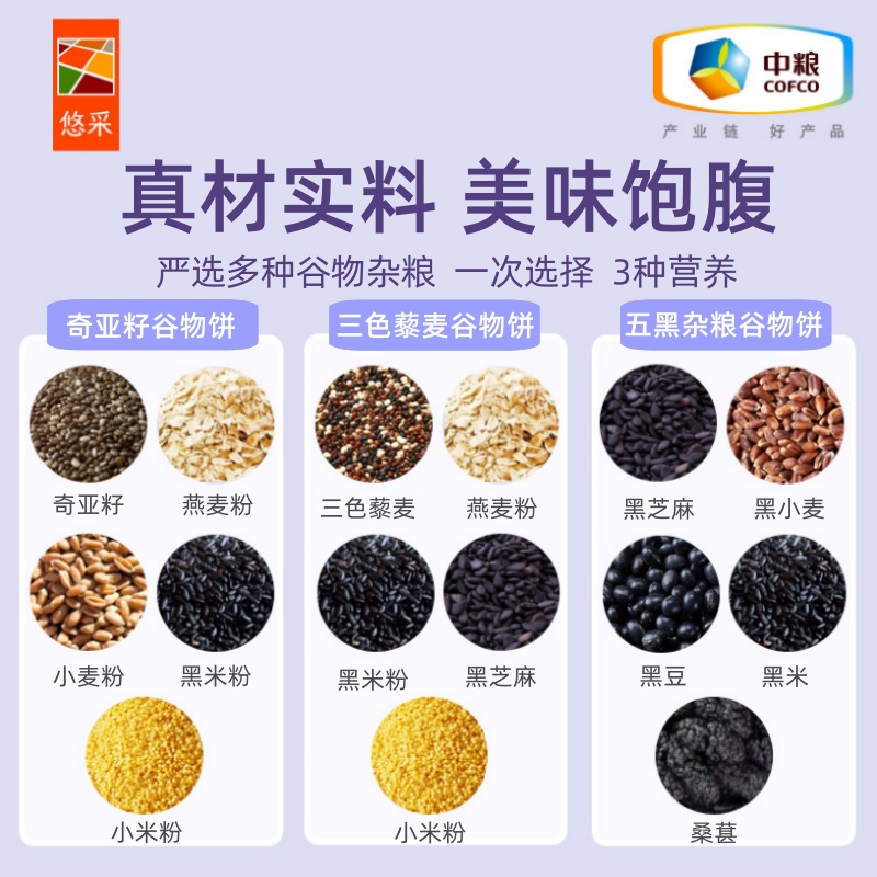 中粮粮小买无糖饼干粗粮孕妇奇亚籽五黑早餐糖尿人单独小包装零食