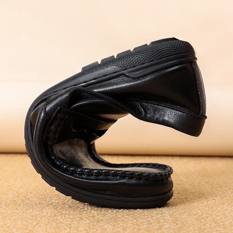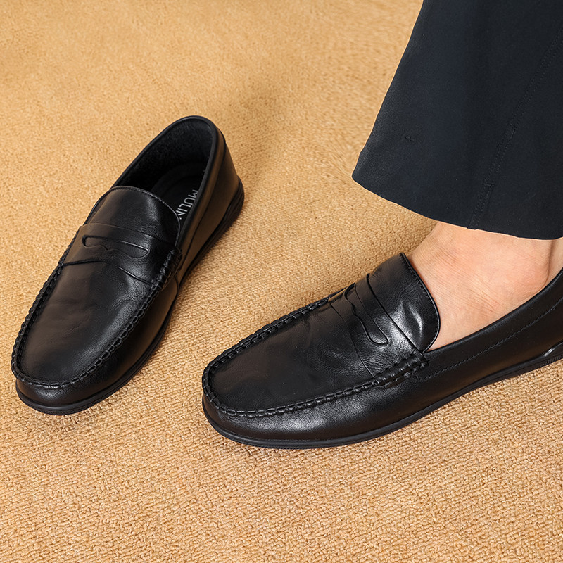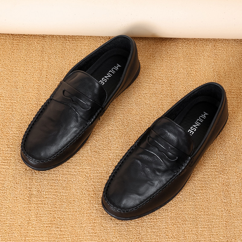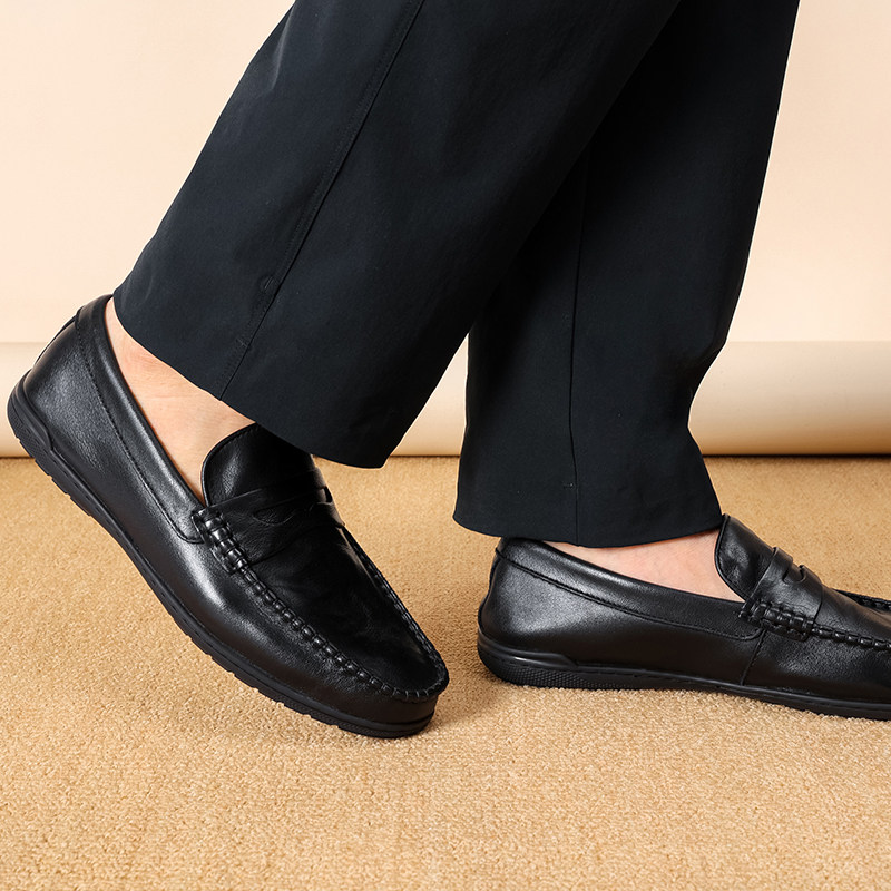 木林森男鞋2025秋季新款胎牛皮革休闲商务皮鞋男士软皮软底豆豆鞋
