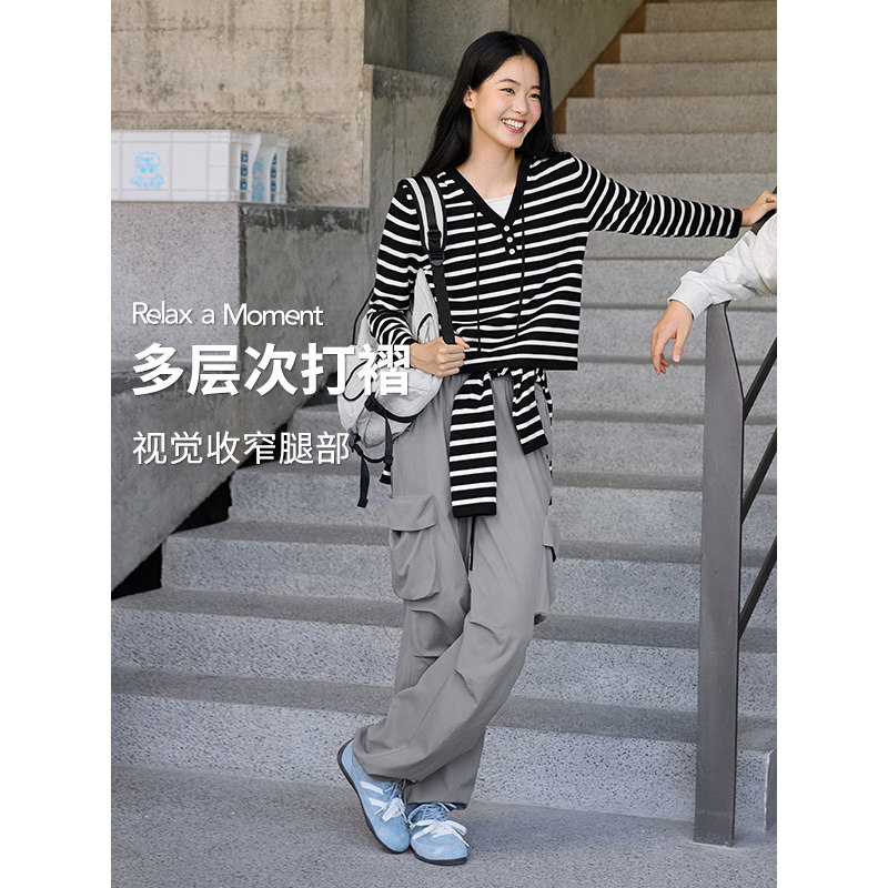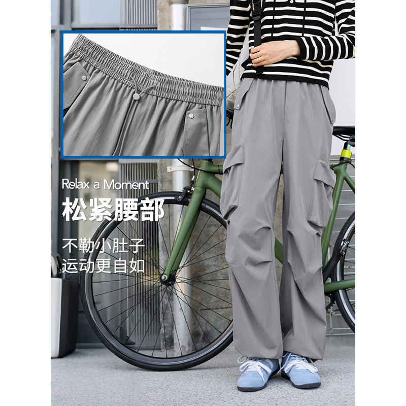 热风女士工装裤2025年秋季新款时尚户外运动风工装伞兵裤休闲长裤