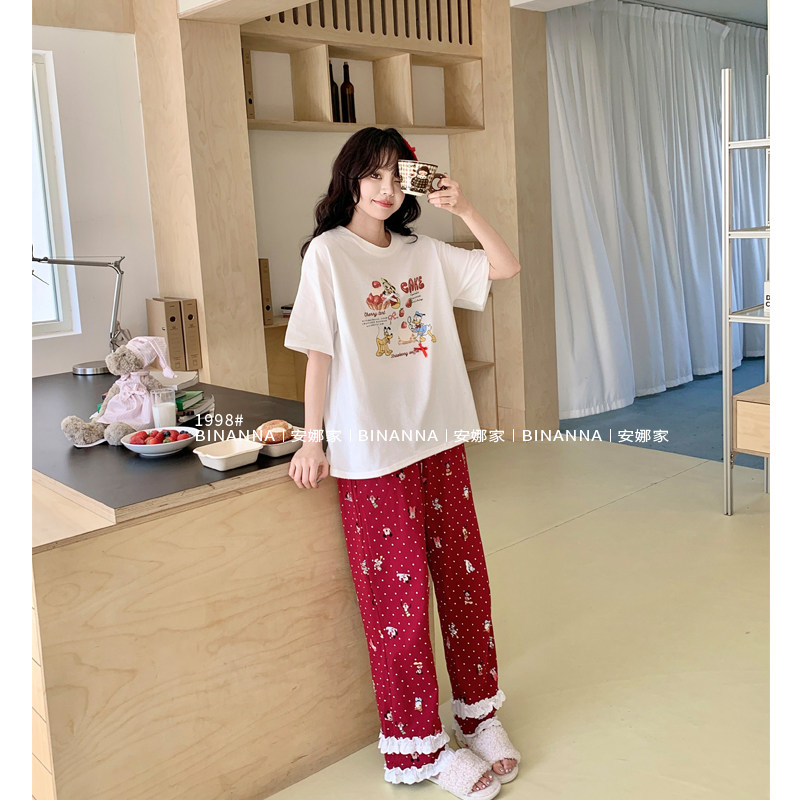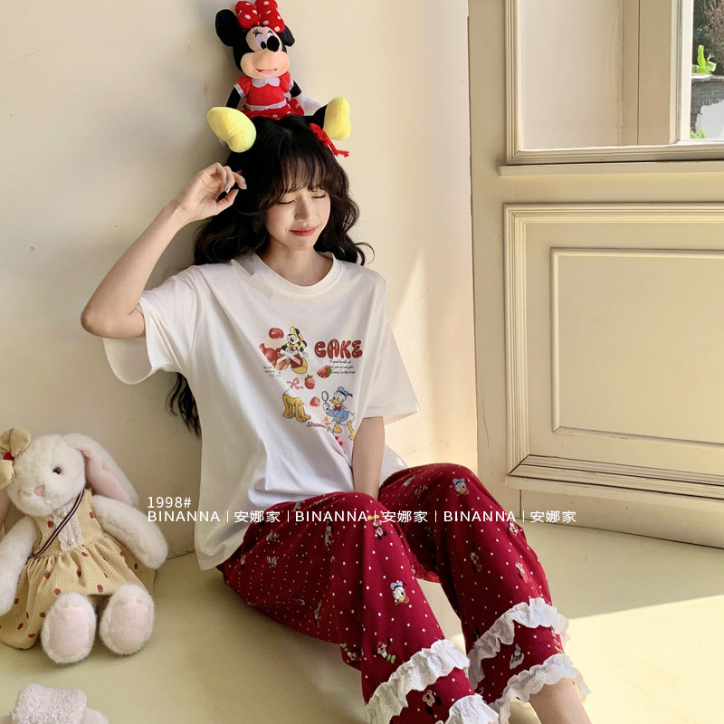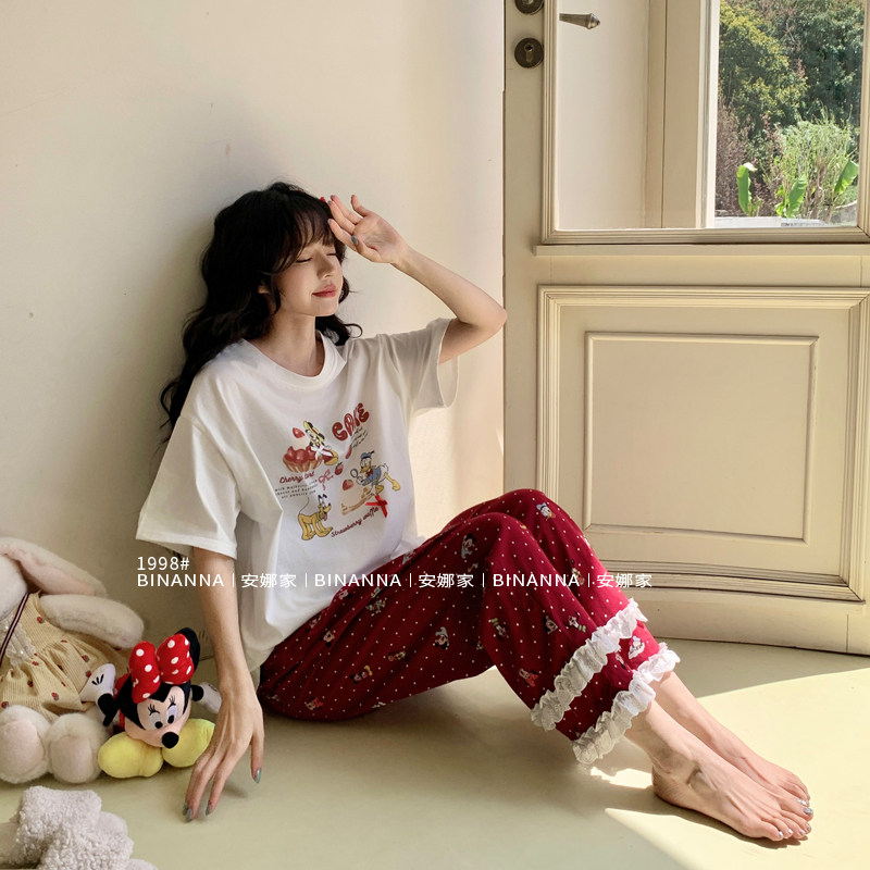 缤安娜家居服睡衣女款2025新款夏季短袖卡通薄款纯棉长裤套装夏款