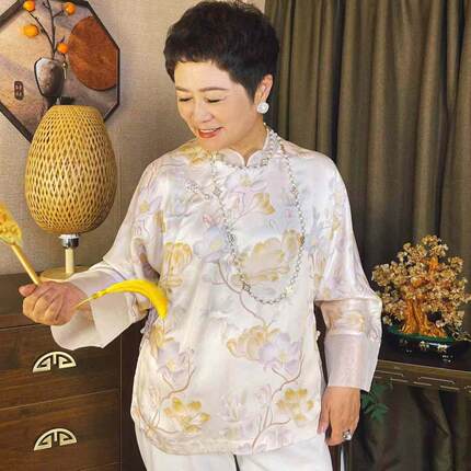 【高货孤品】桑蚕丝立领印花上衣中式真丝提花花萝盘扣斜门襟衬衫