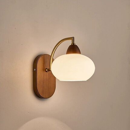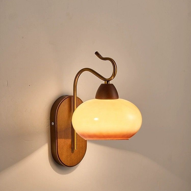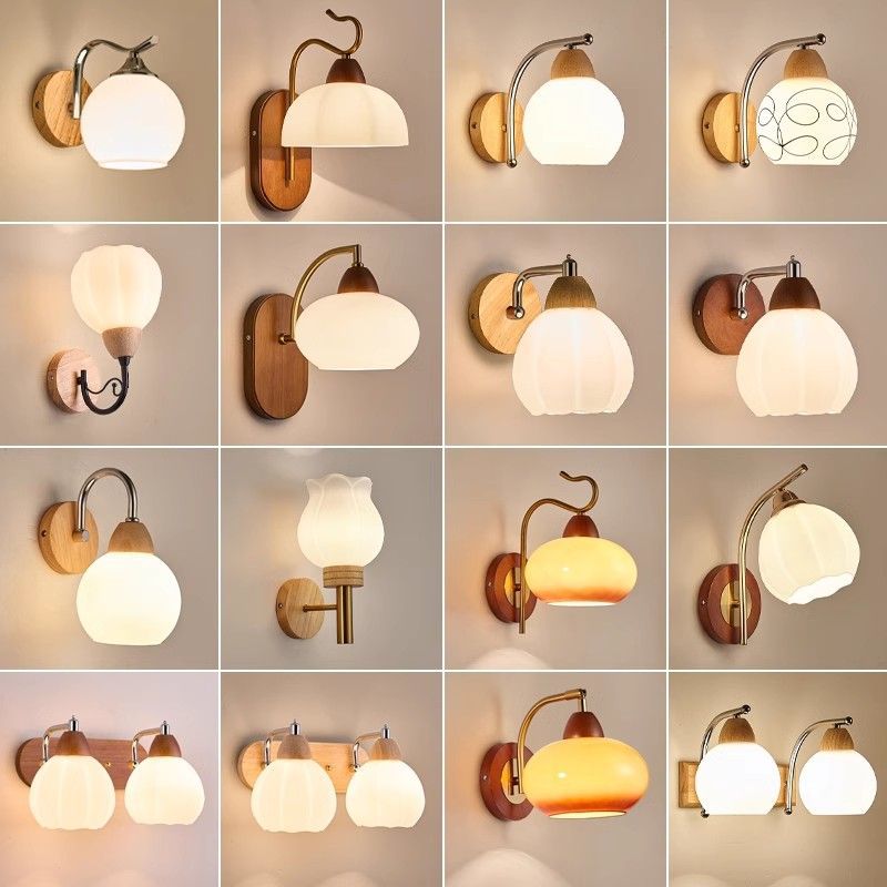 原木风新款简约创意中式实木复古卧室床头客厅过道楼梯壁灯