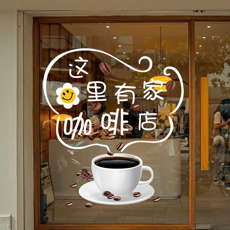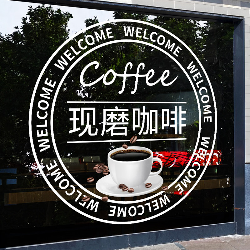 咖啡店装饰橱窗布置静电贴奶茶店墙面广告贴画现磨咖啡馆玻璃贴纸
