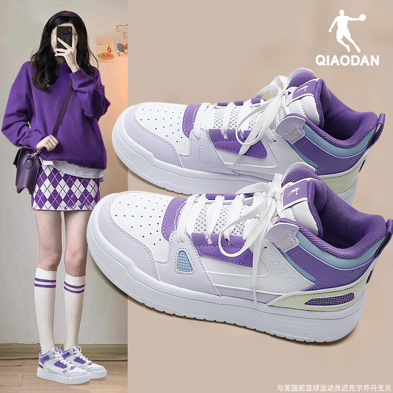 乔丹紫色高帮板鞋女款2025新款秋冬季防滑休闲小白鞋通勤运动鞋