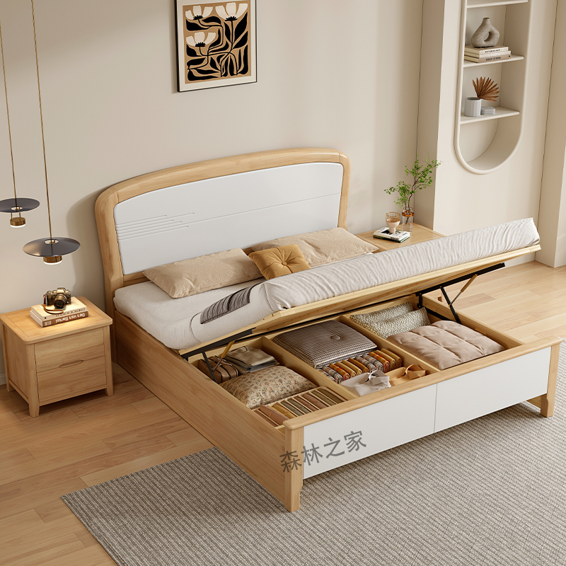 实木床现代简约1.8米主卧双人床全实木1.5米白色单人榫卯储物婚床