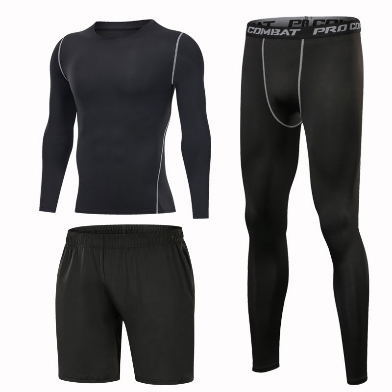 健身服套装男运动紧身衣长袖高弹透气跑步篮球训练秋冬三件套