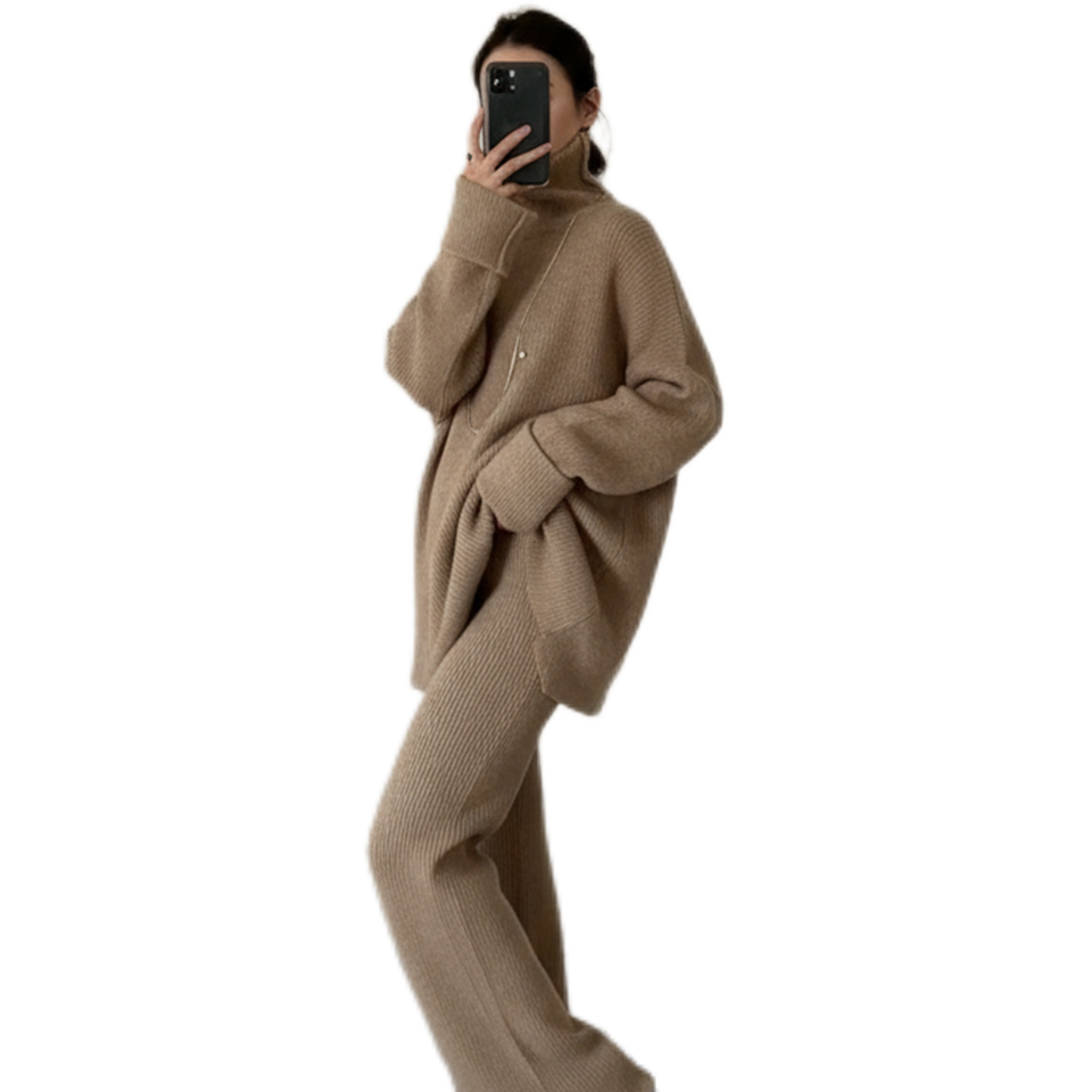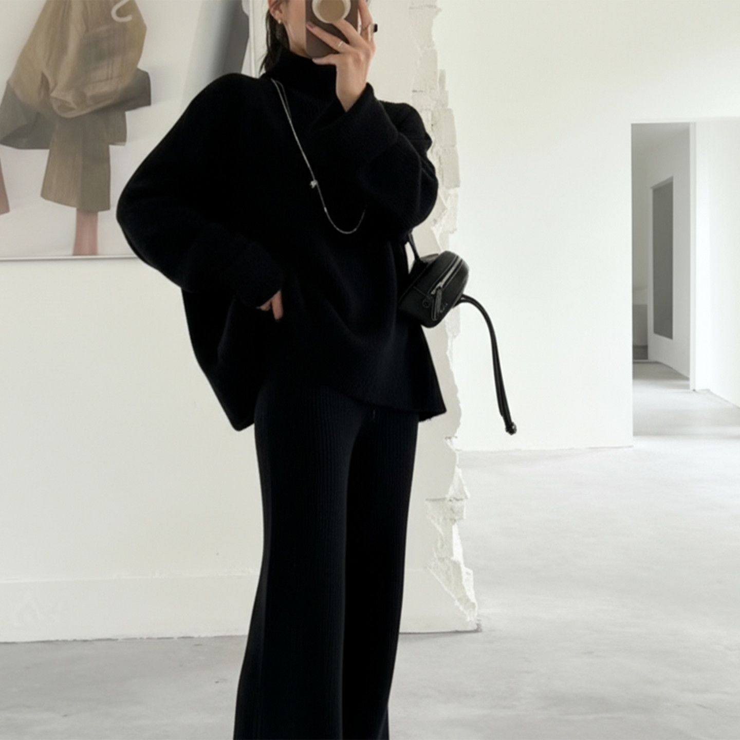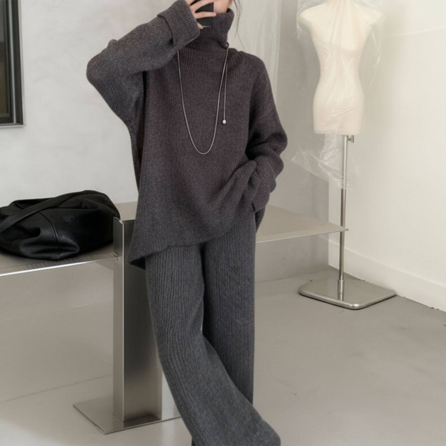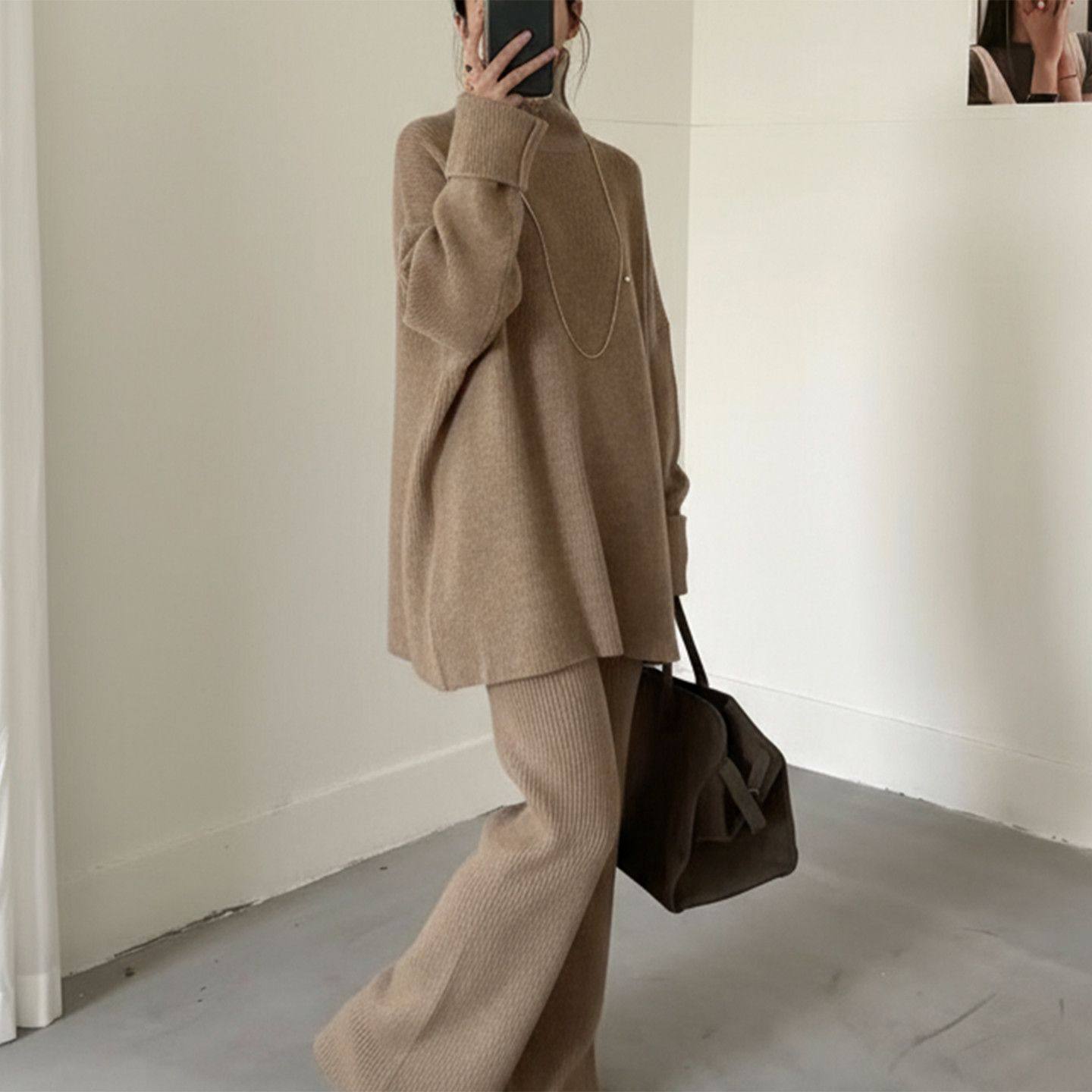 2025秋冬新款毛衣套装休闲针织长袖高领上衣阔腿裤两件套 nnassa