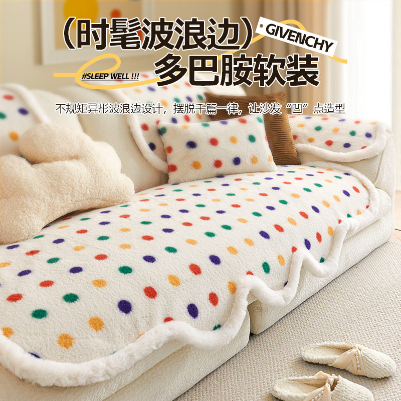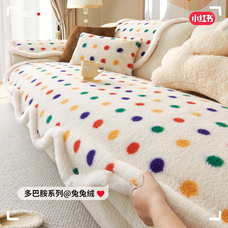 annahouse波点兔毛绒沙发垫秋冬季异形不规则多巴胺沙发防滑套罩