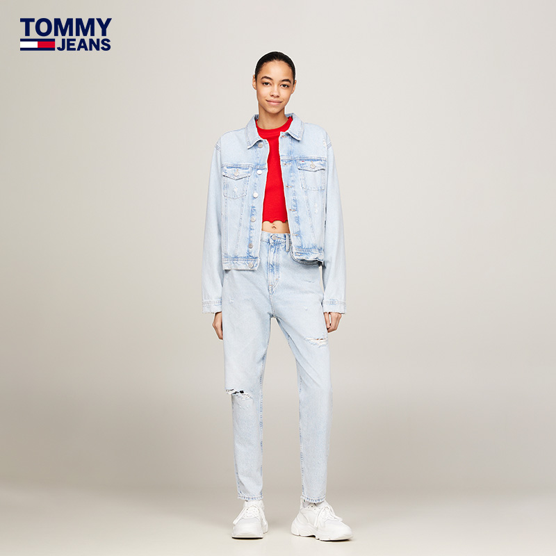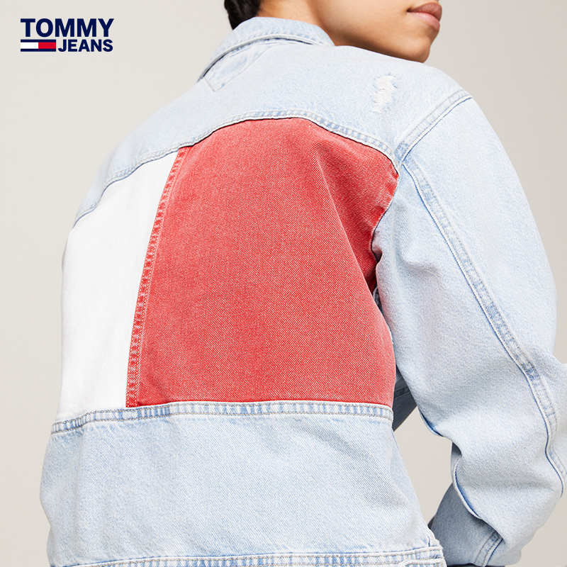 Tommy秋冬女装纯棉美式复古经典后背醒目拼色翻领挺括牛仔外套