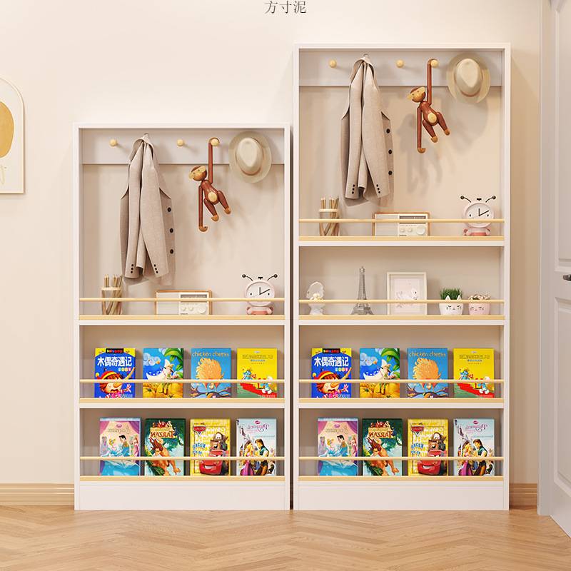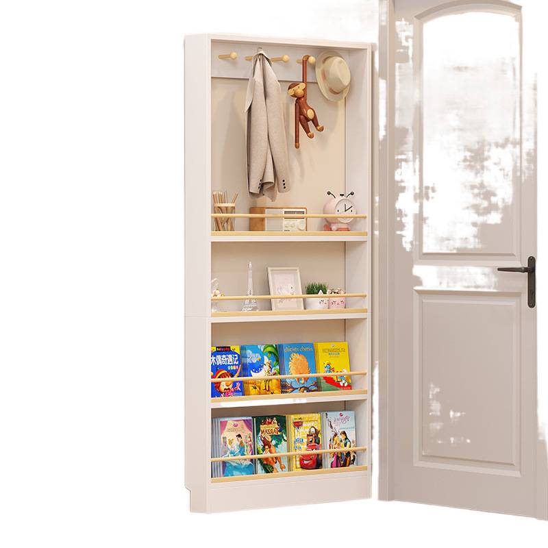 门后置物架超薄儿童实木书架落地白色多层收纳架家用绘本架窄书柜