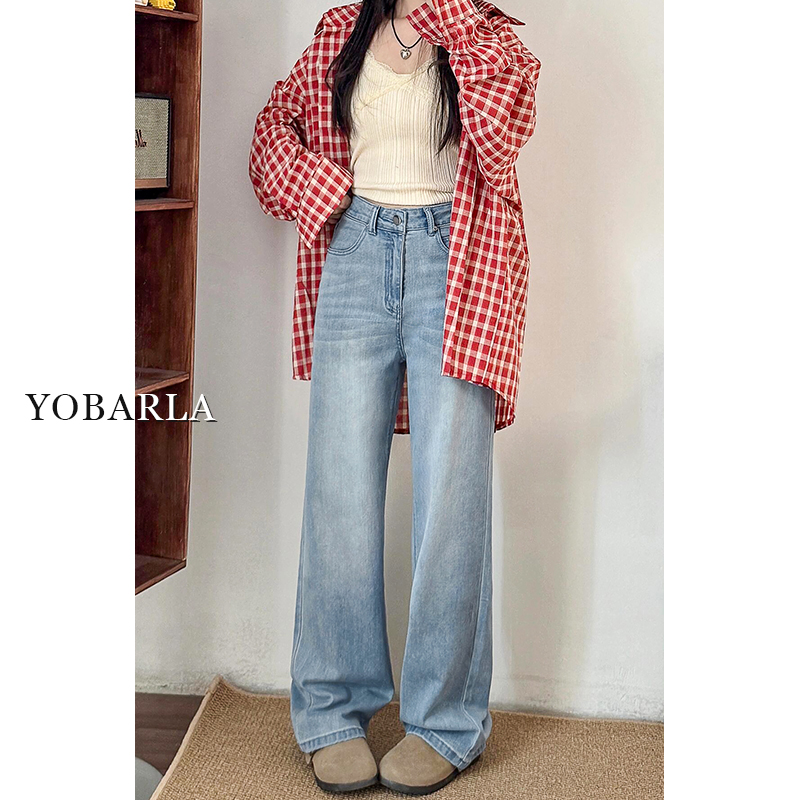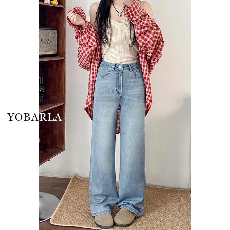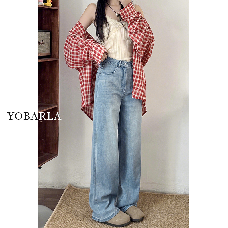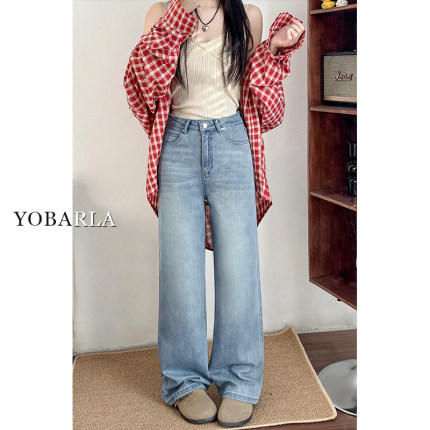 浅色天丝阔腿牛仔裤女夏薄款高腰大码胖mm宽松显瘦垂感窄版直筒裤