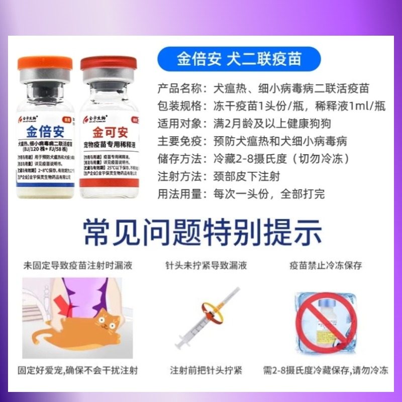 宠物二联预防针国产狗狗幼犬28天犬瘟细小金宇2联疫苗狗场繁育
