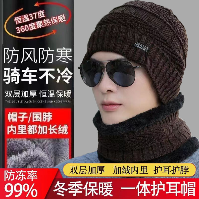 冬天帽子男女加绒秋冬季冬季针织一体加厚防寒毛线帽护耳围脖保暖