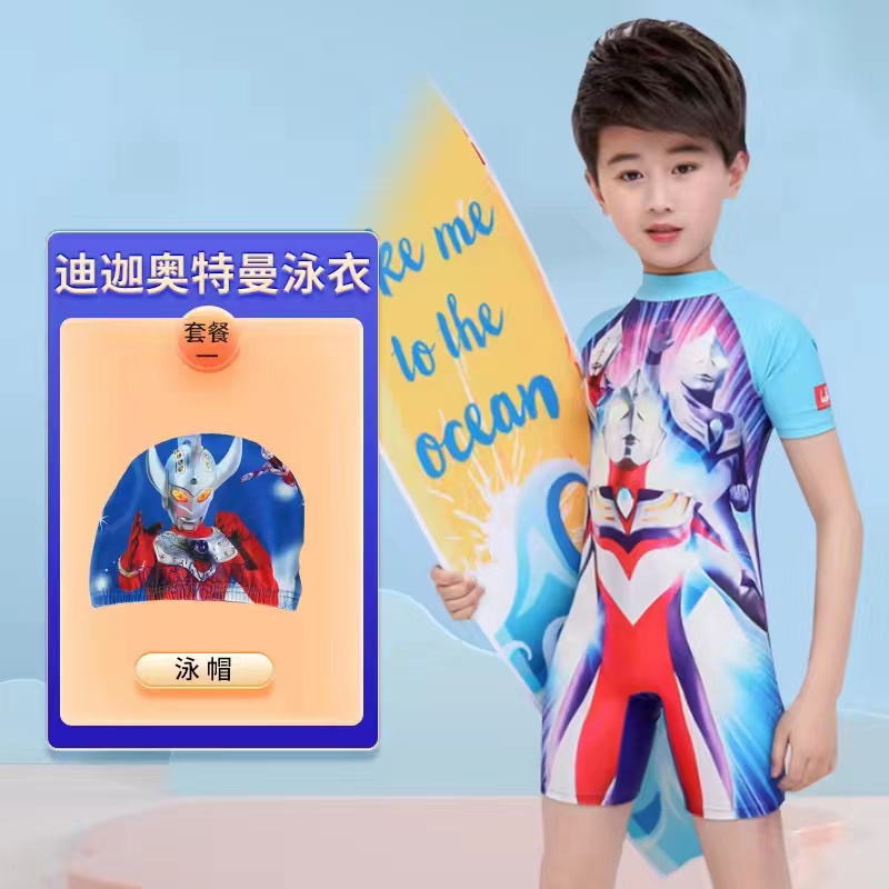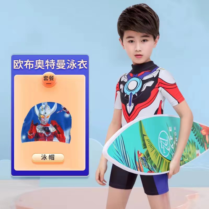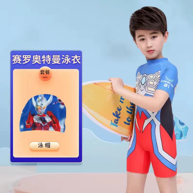 儿童奥特曼泳衣夏季男孩赛罗奥特曼连体防热游泳衣中大童速干泳装