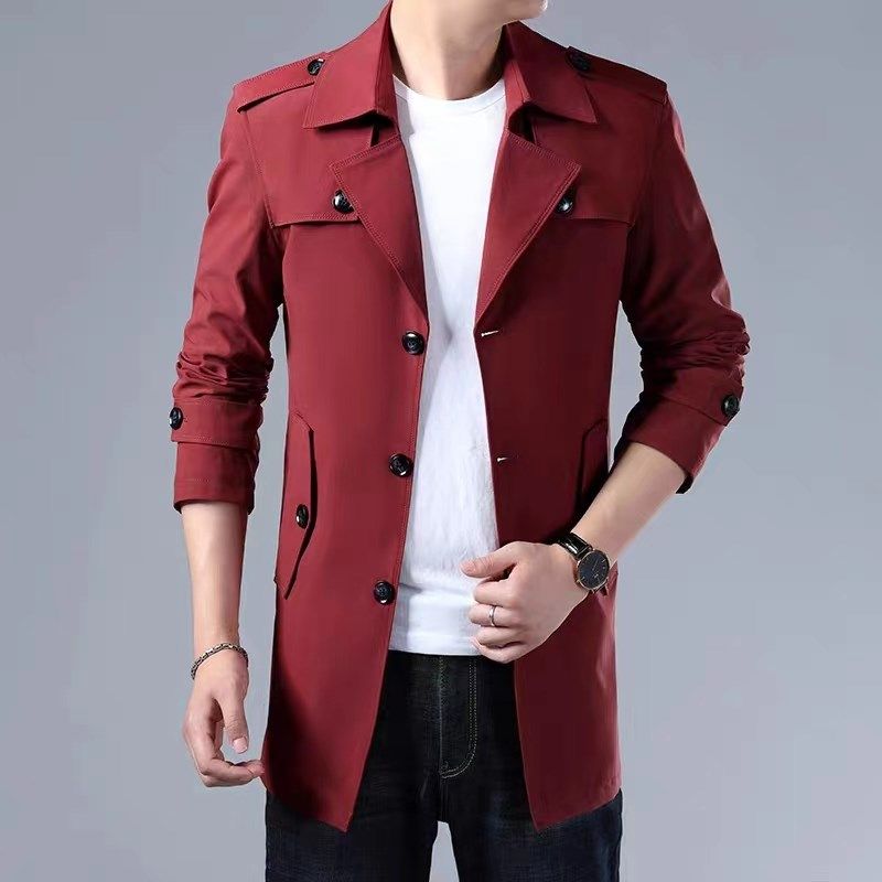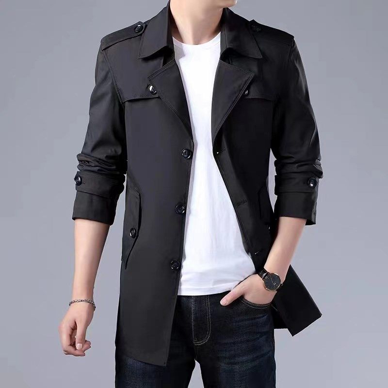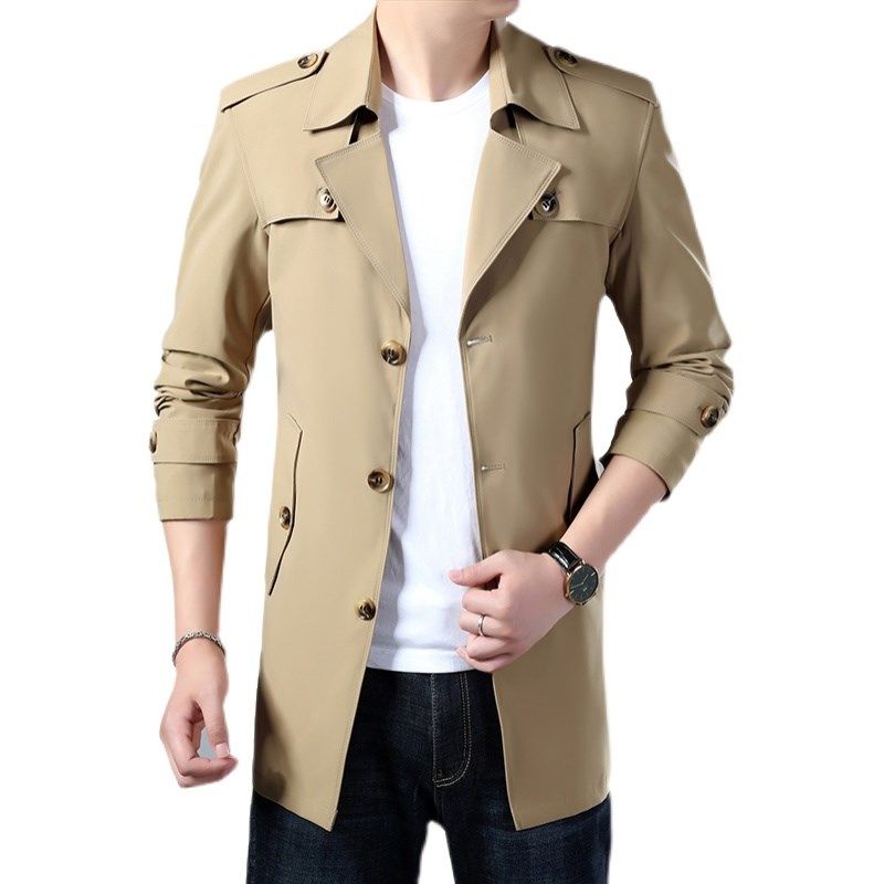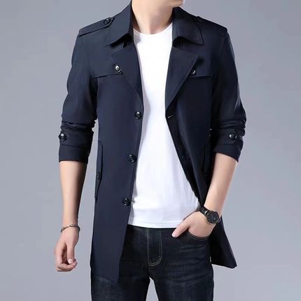 男士风衣秋冬季休闲时尚大码外套修身夹克青年军绿色上衣2024新款