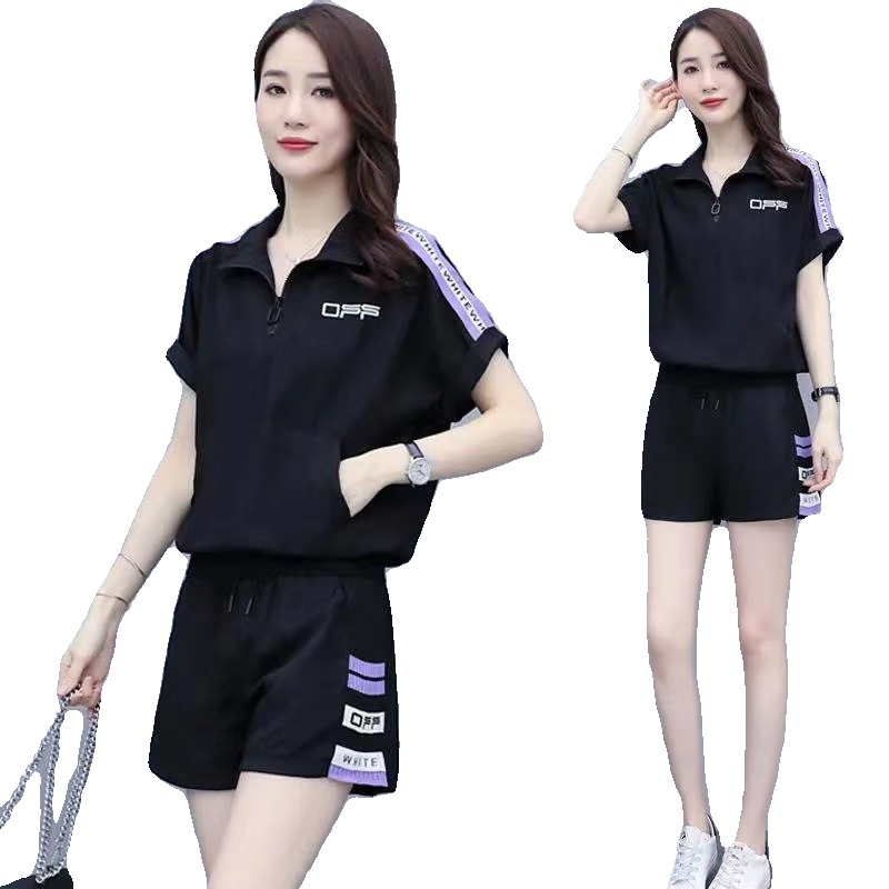 大码休闲短裤套装女夏2024年新款胖mm减龄运动宽松短袖卫衣两件套