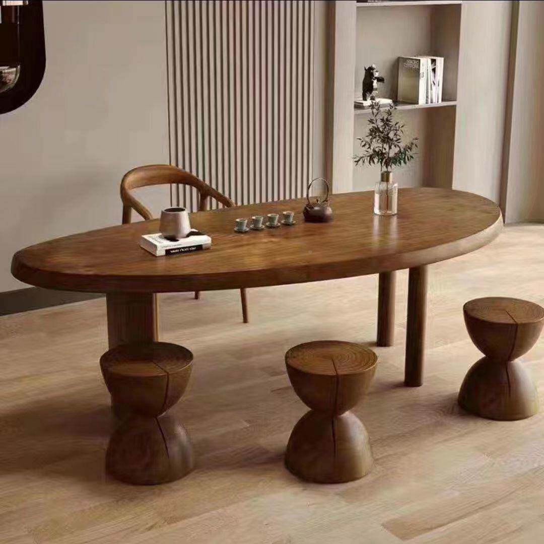 茶用几网红组合大板圆创意客厅家茶几阳木QMD台原泡茶椭桌子鹅蛋