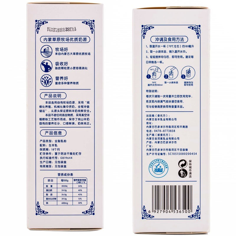 西蒙纯羊奶粉生羊乳孕妇儿童中老年360g18小袋内蒙古原产地羊奶粉