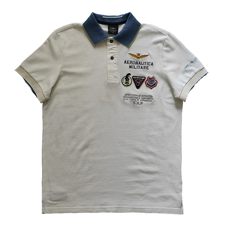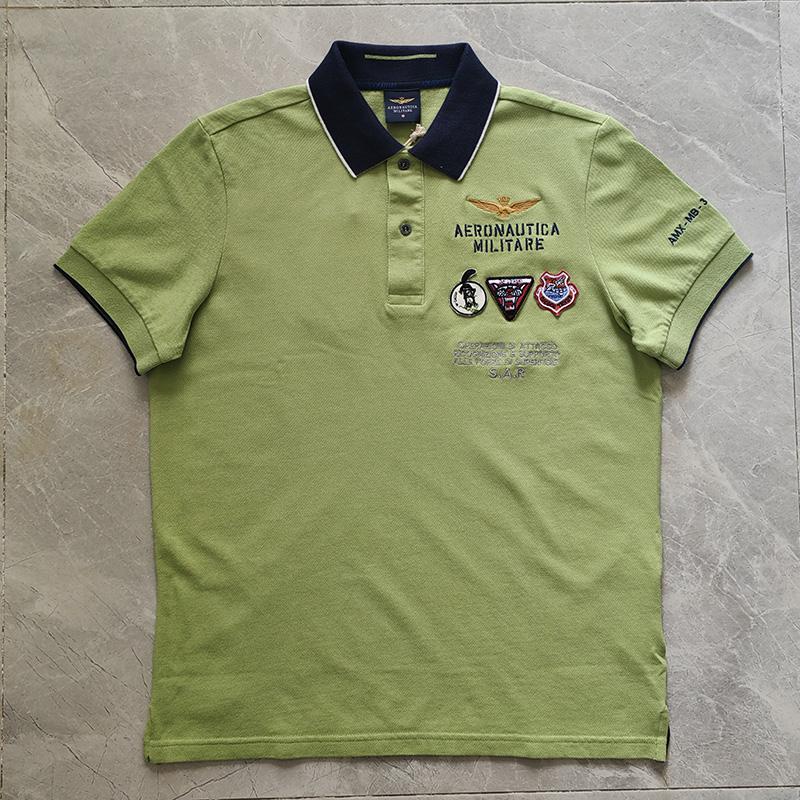 夏季男装短袖polo衫纯棉重工刺绣翻领t恤AM空军一号珠地棉直筒潮