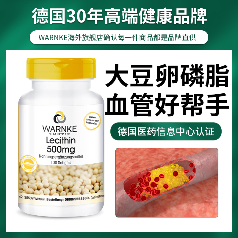 德国原装进口大豆卵磷脂软胶囊软化100粒中老年进口血管保健品