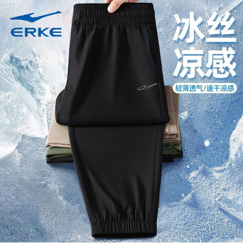鸿星尔克冰丝速干长裤男2025夏季新款宽松直筒户外梭织透气运动裤