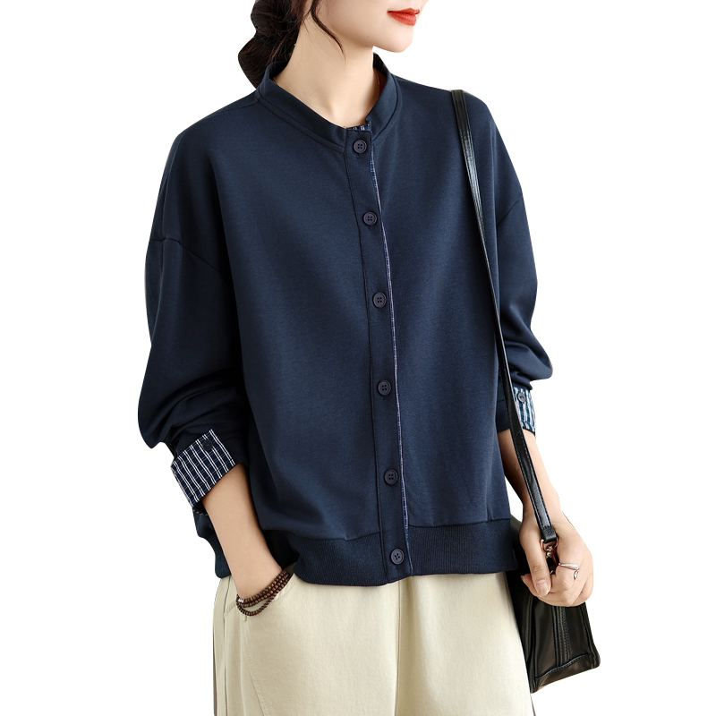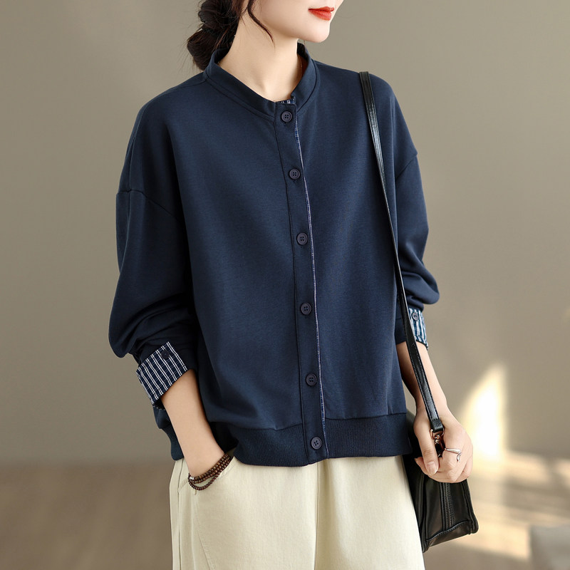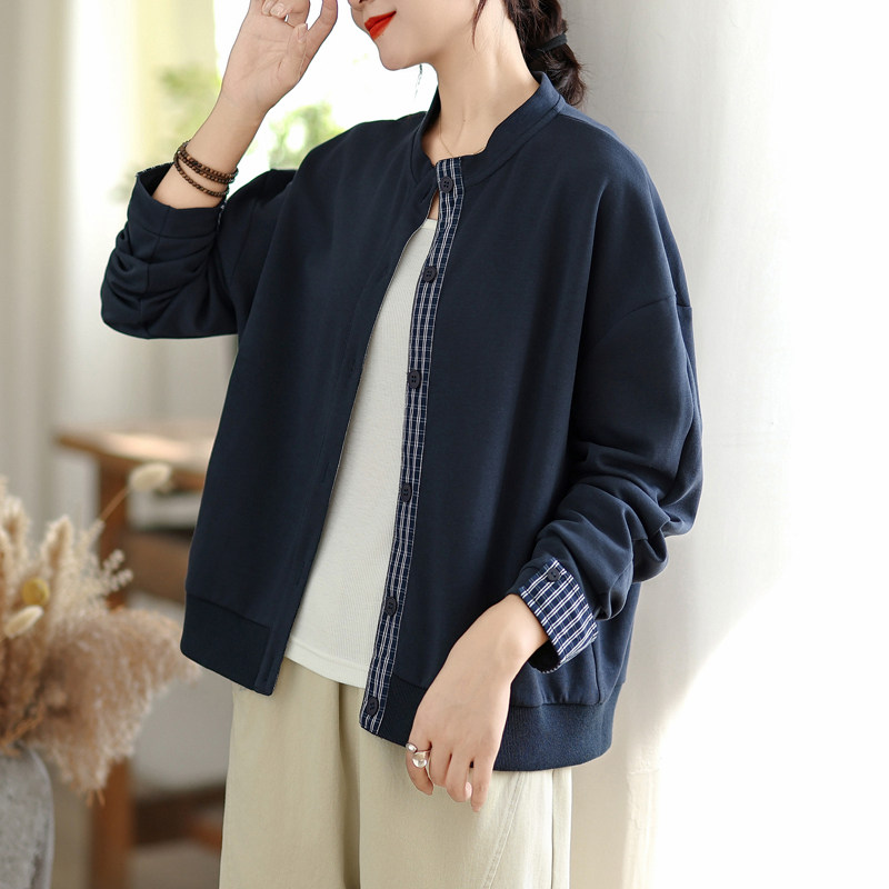 复古棉质立领短外套女春秋2025新款时尚休闲百搭棒球服长袖上衣潮