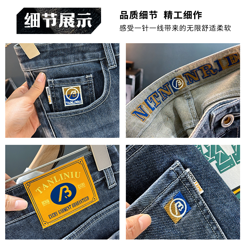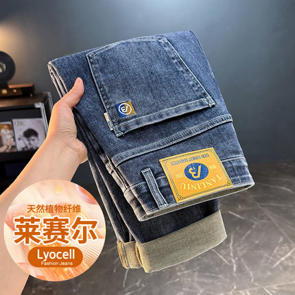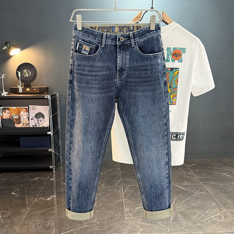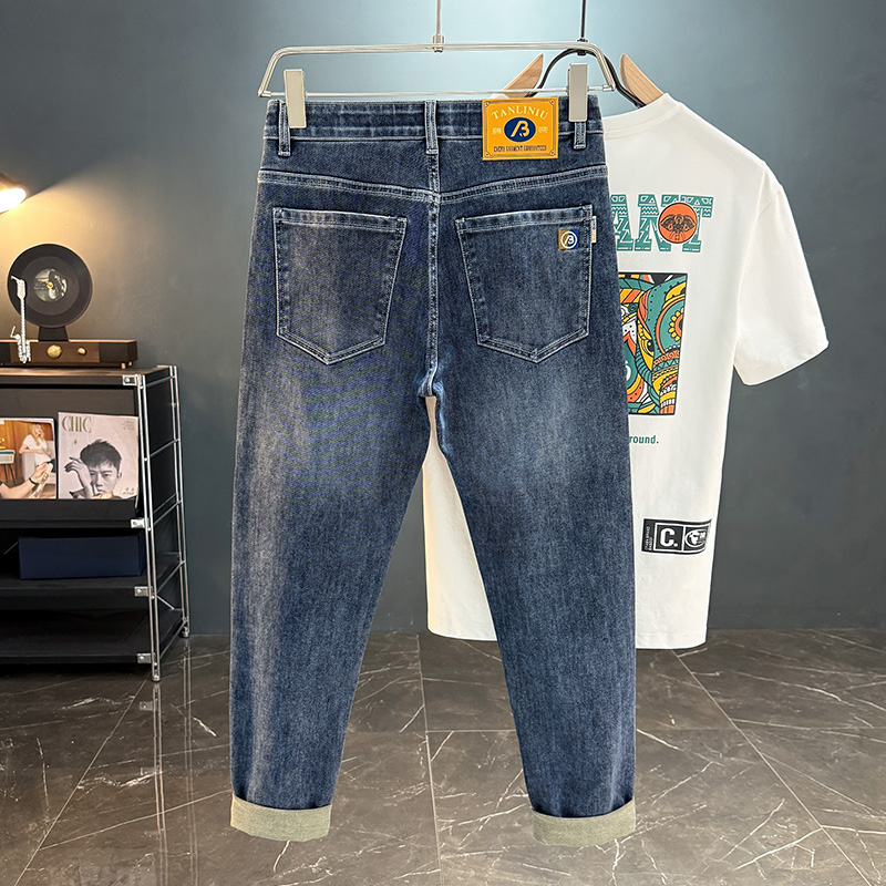 2025夏季新款男士牛仔裤轻奢修身小脚直筒休闲长裤弹力薄款裤子男