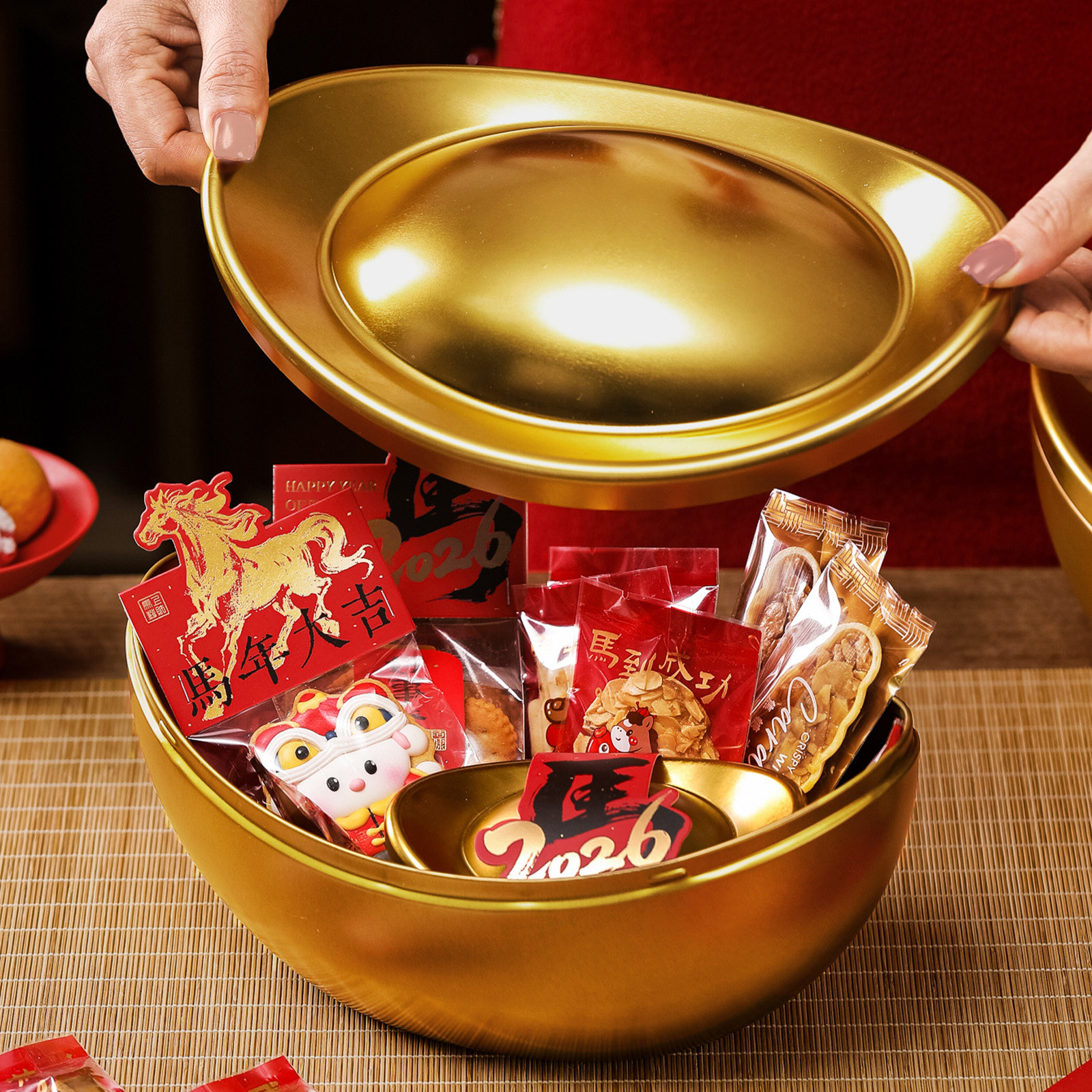 大金元宝铁盒新年礼盒包装盒烘焙过年糖果盒春节饼干礼品盒空盒子