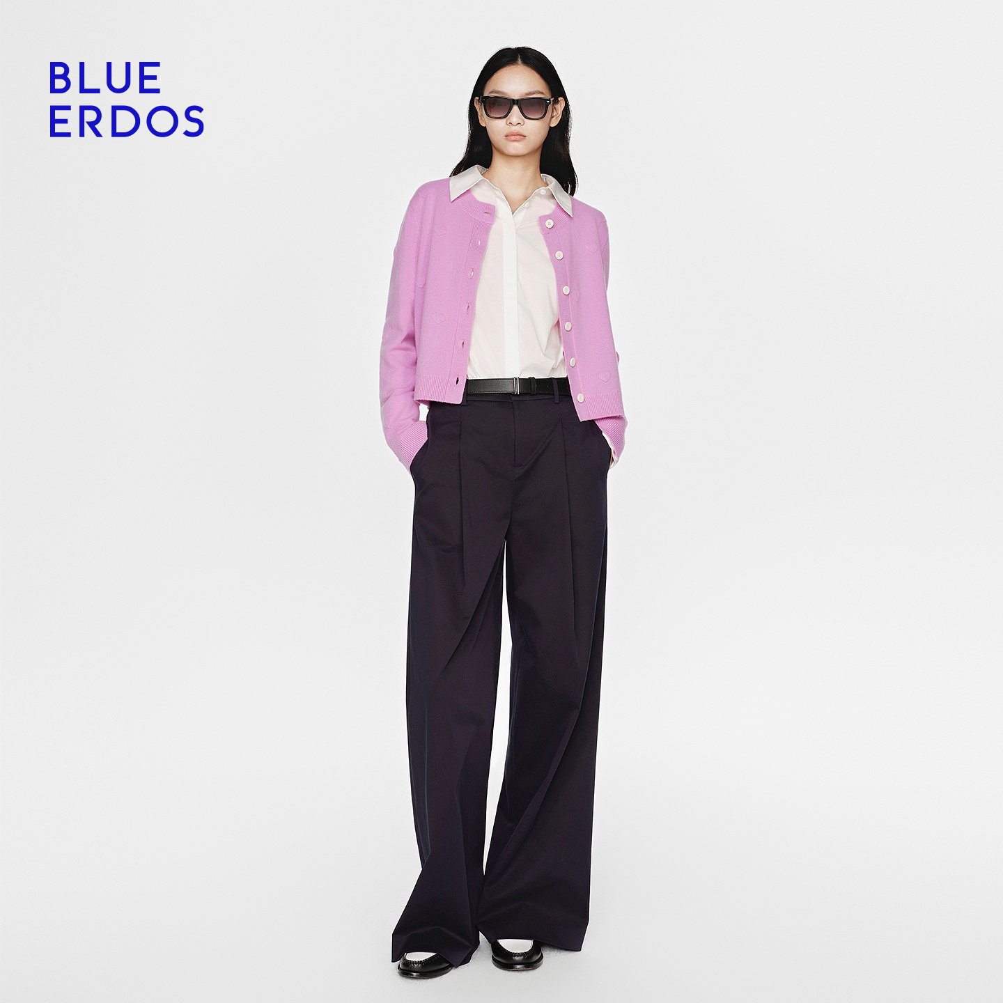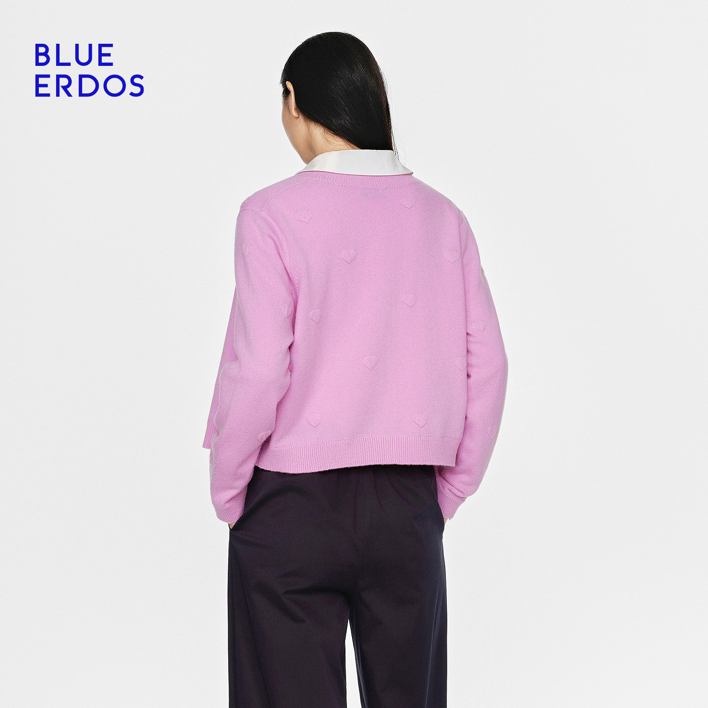 【心愿针织】BLUE ERDOS26早春新品羊毛羊绒混纺圆领提花针织开衫