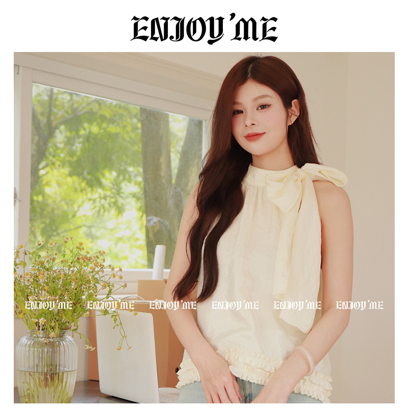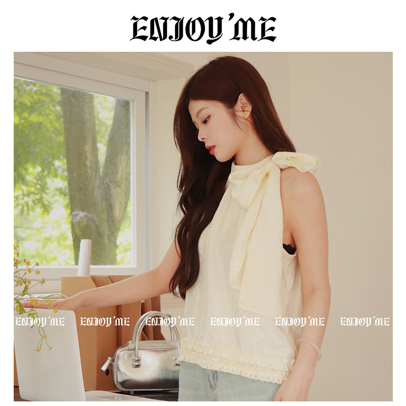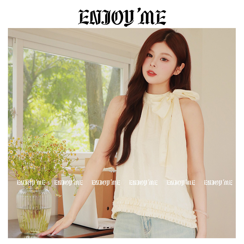 ENJOYME商场同款蝴蝶结挂脖背心女夏季设计感拼接木耳边露肩上衣
