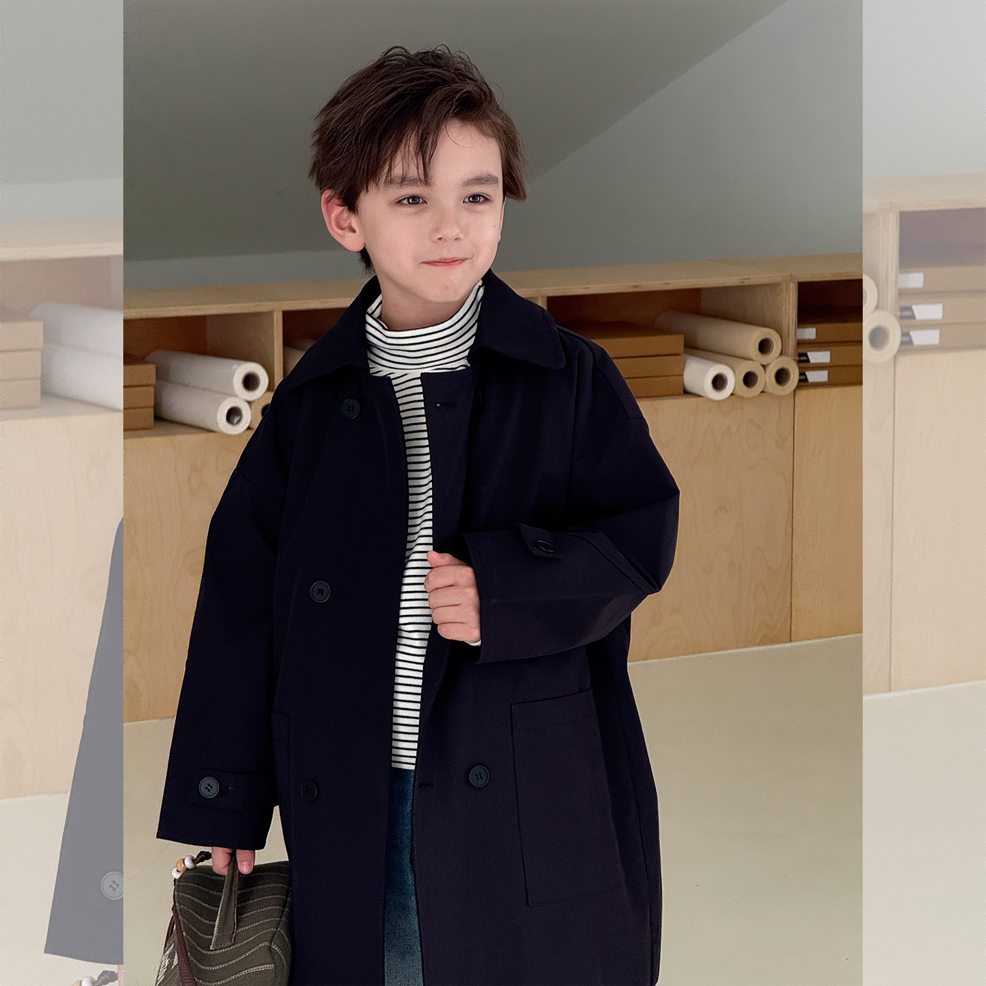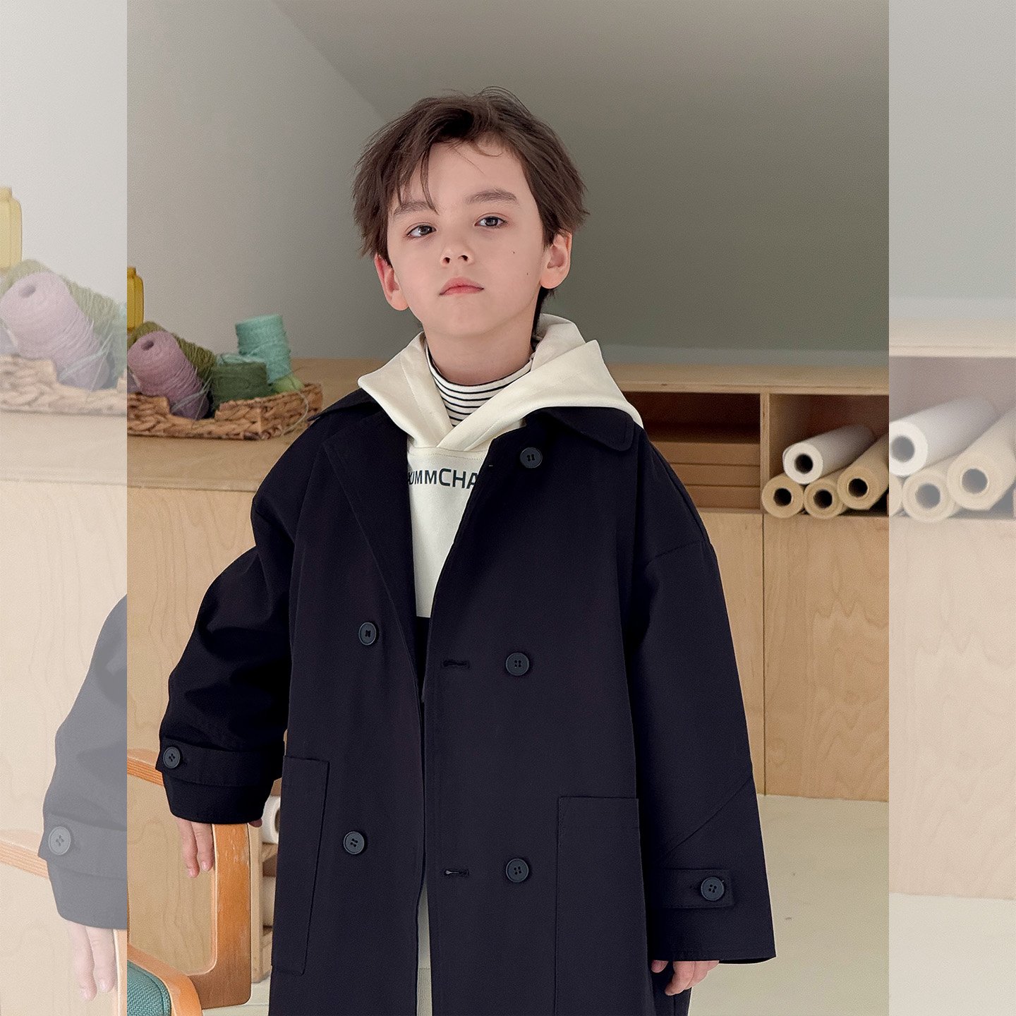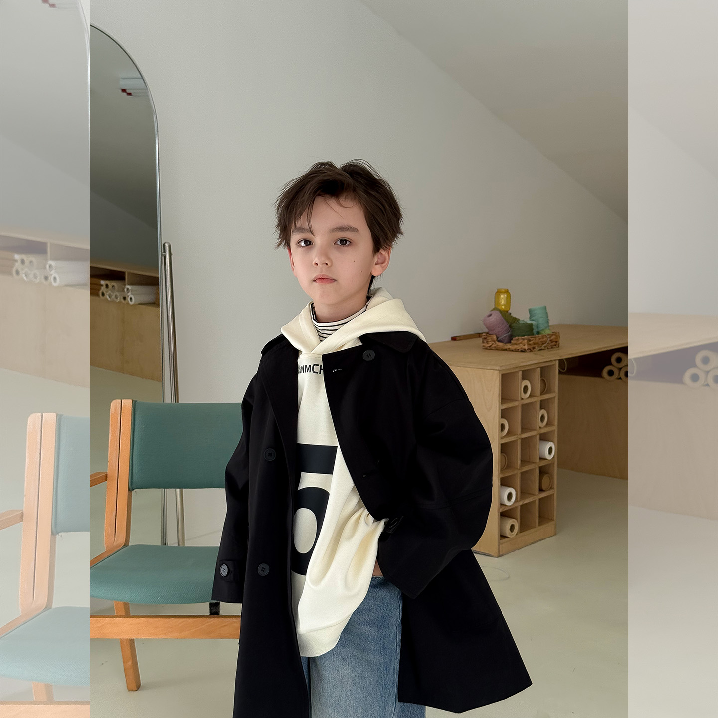虾酱麻麻男童纯棉风衣春秋装2025新款男孩洋气中长款儿童秋季外套