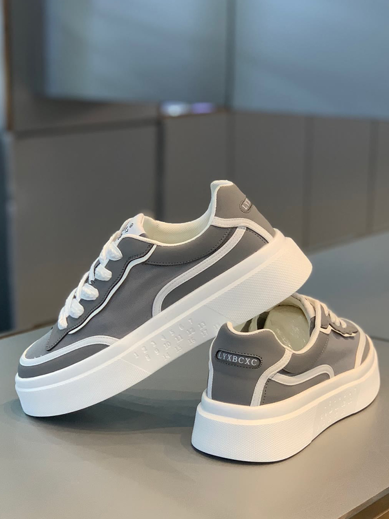 男鞋2024夏季新款布面厚底小白鞋系带时尚板鞋潮流透气爆款休闲鞋