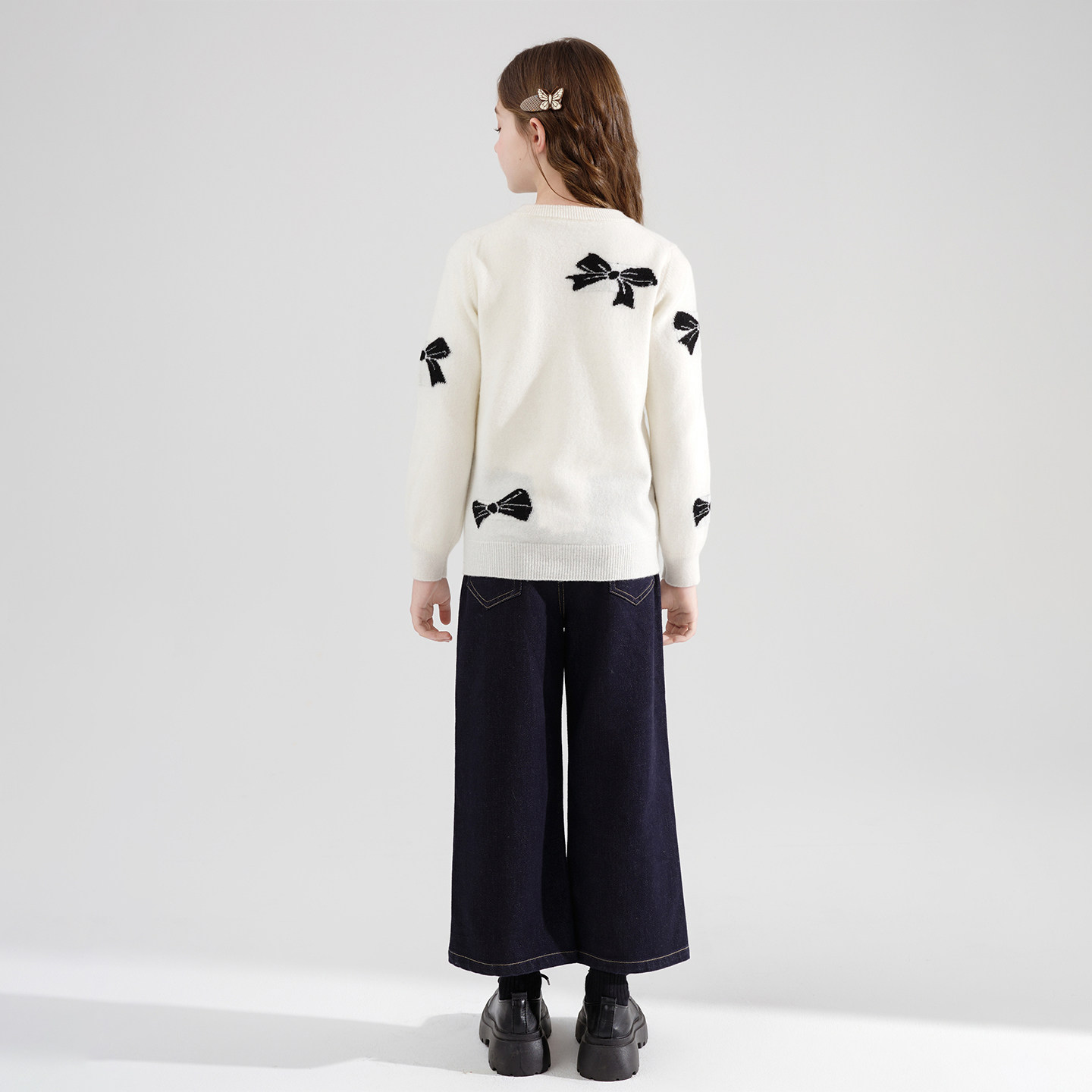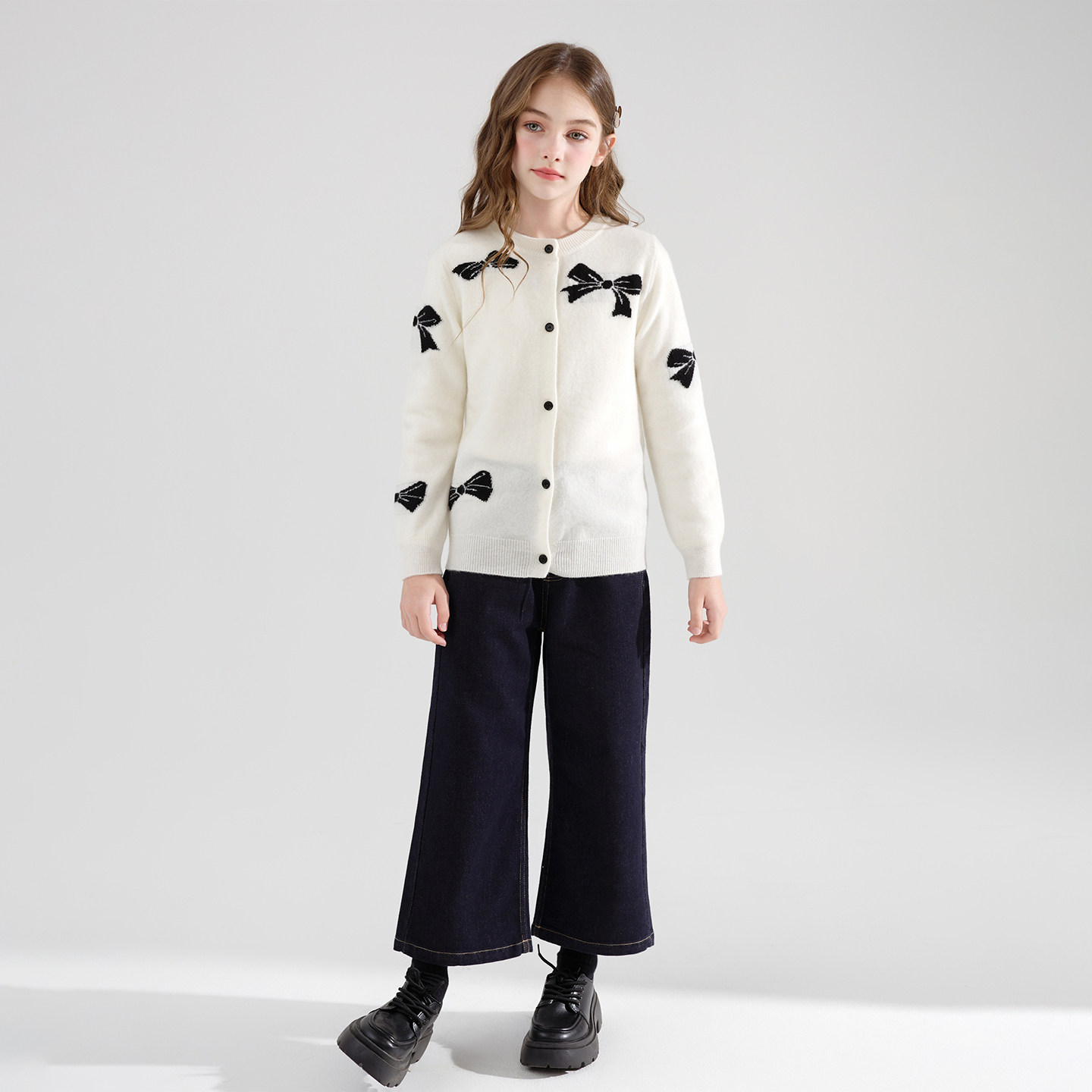 儿童羊毛开衫女童蝴蝶结公主风系扣毛衣女宝圆领外穿针织外套