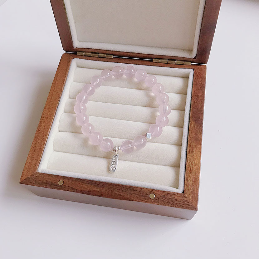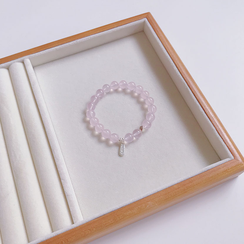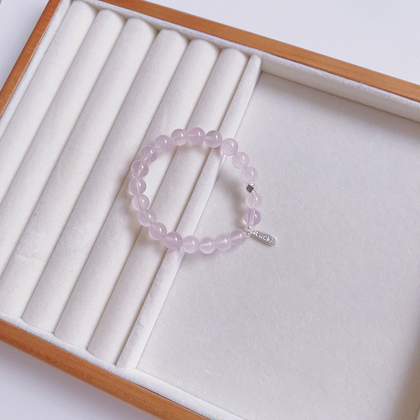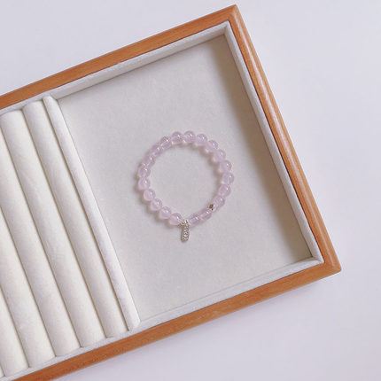 清甜少女心~天然粉水晶冰透粉色莫粉原创小众纯银手链梦幻手串女