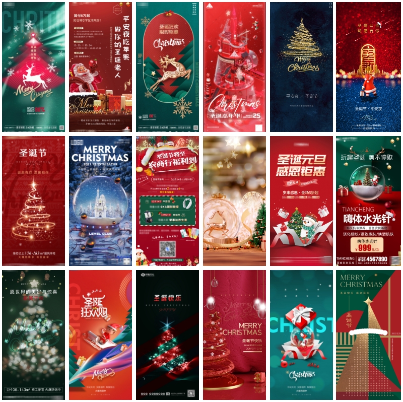 圣诞节平安夜海报插画展板创意节日宣传手机H5设计PSD素材模板