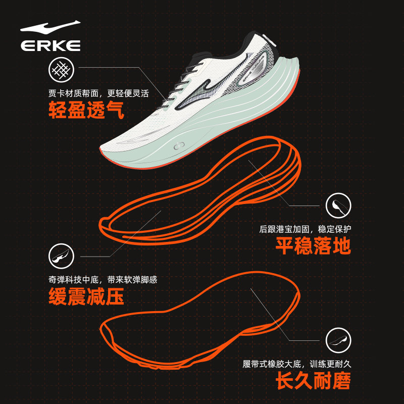揽跃鸿星尔克跑鞋奇弹男鞋2025秋季网面透气运动鞋轻便休闲鞋子男