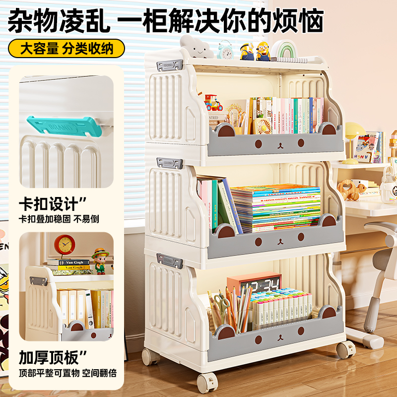 小推车置物架家用客厅婴儿玩具零食储物柜可移动多层落地儿童书架