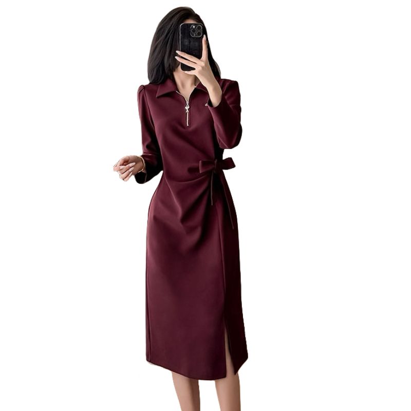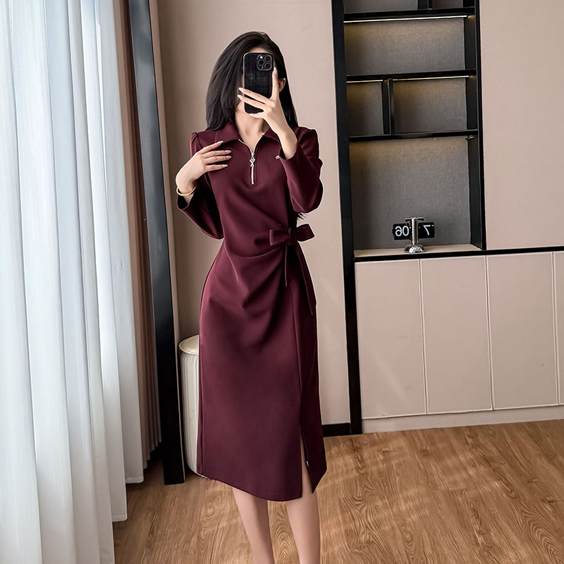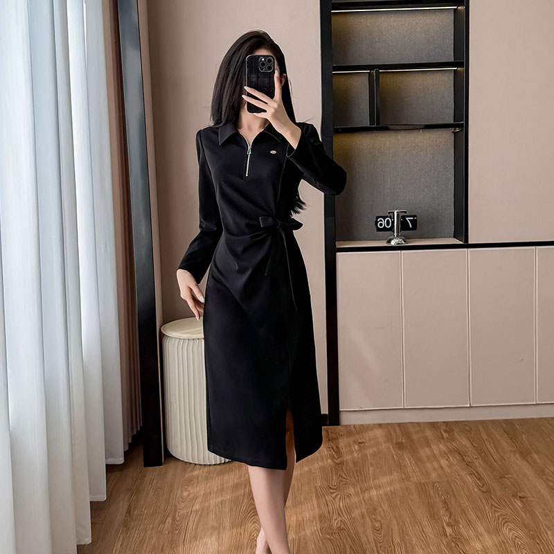 实拍 2025秋冬新款胖mm简约拉链时尚显瘦裙子洋气百搭修身连衣裙
