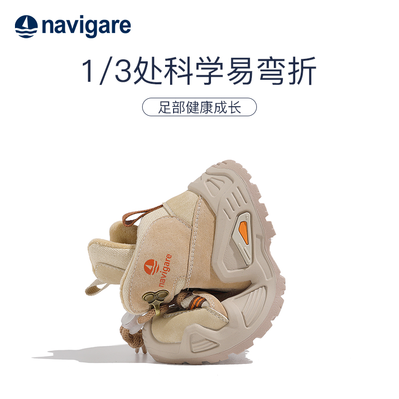 Navigare意大利小帆船儿童运动鞋中大童冬季加绒保暖男女童二棉鞋