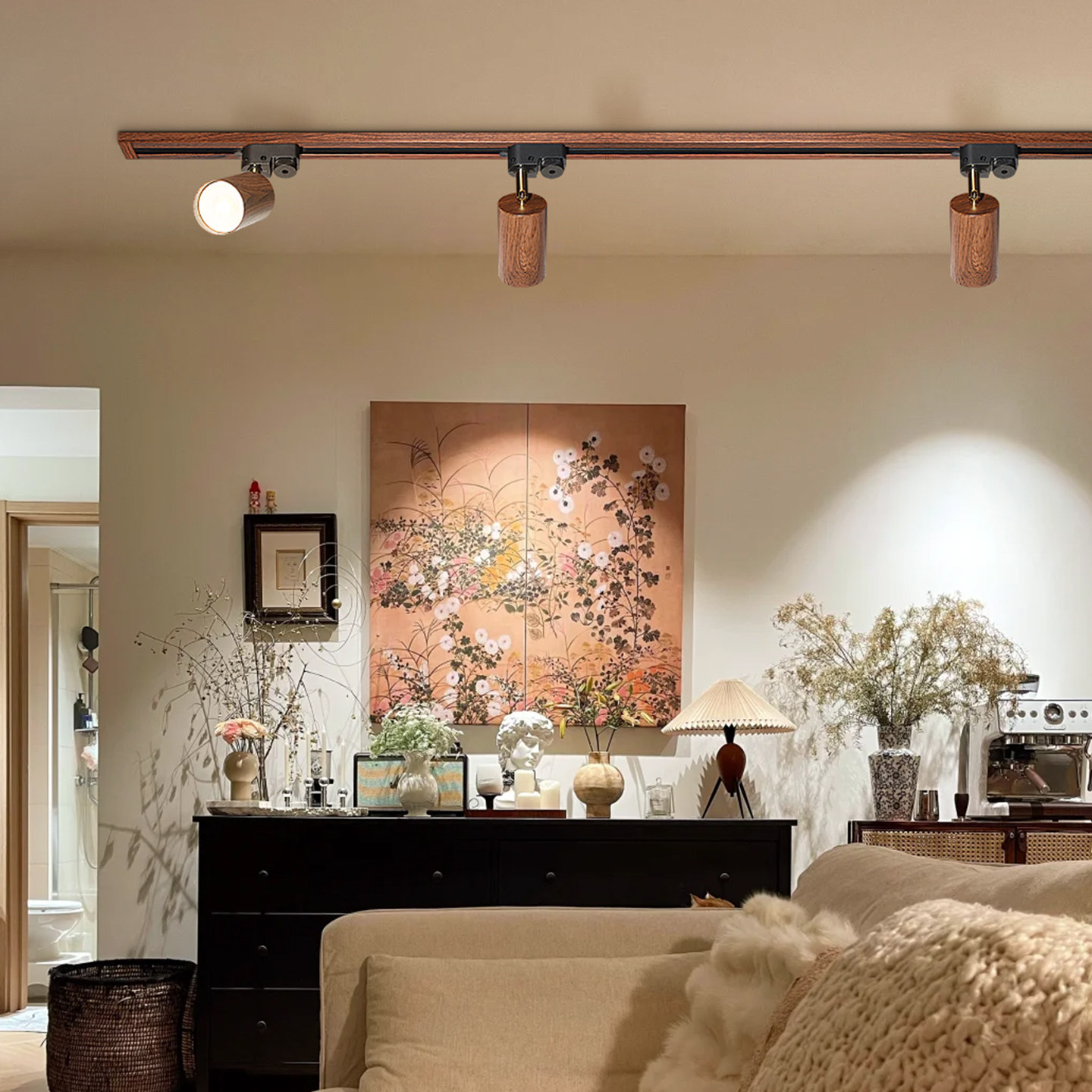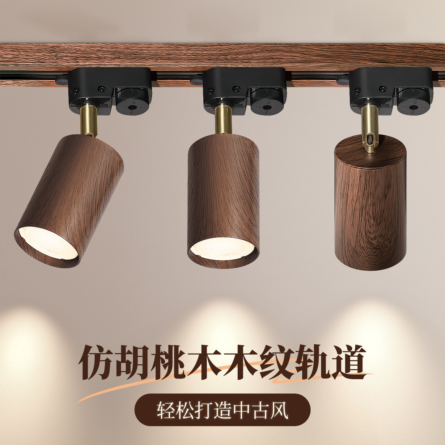 仿胡桃木木纹轨道条中古风射灯轨道导轨家用轻奢复古装修装饰专用