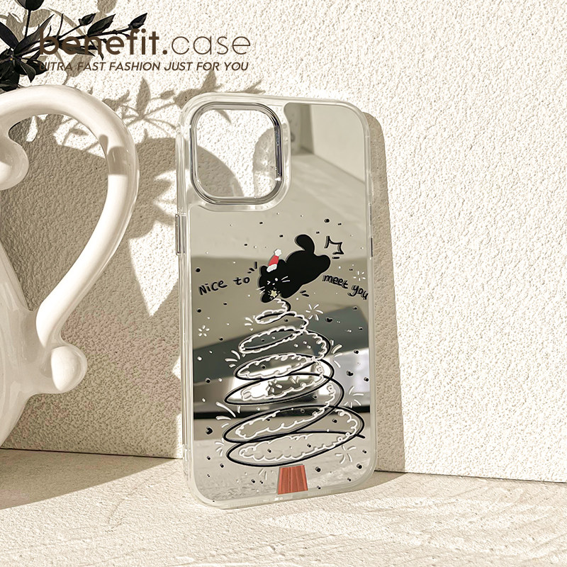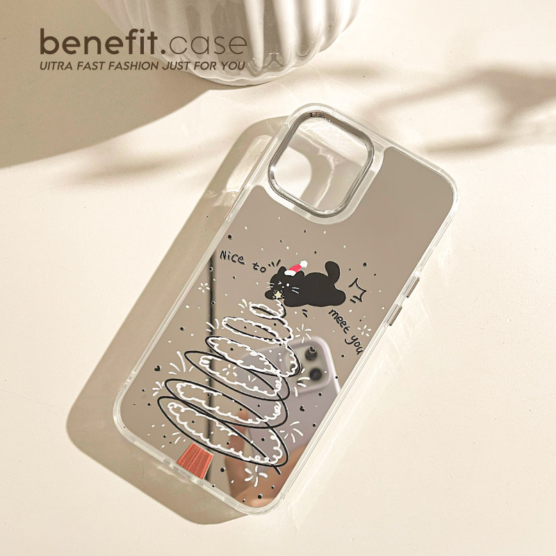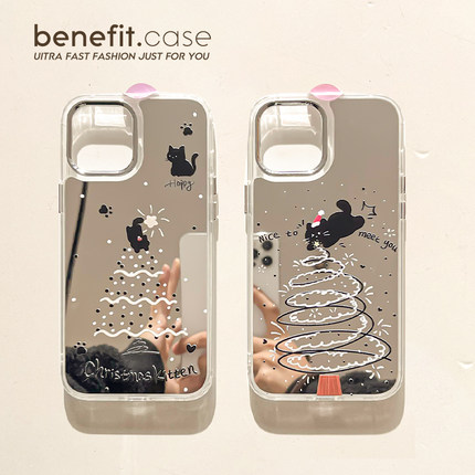 benefit卡通可爱猫咪圣诞树17pro16适用于苹果15手机壳13iphone14promax新款12套11小众xsmax镜面xr硅胶8p7p