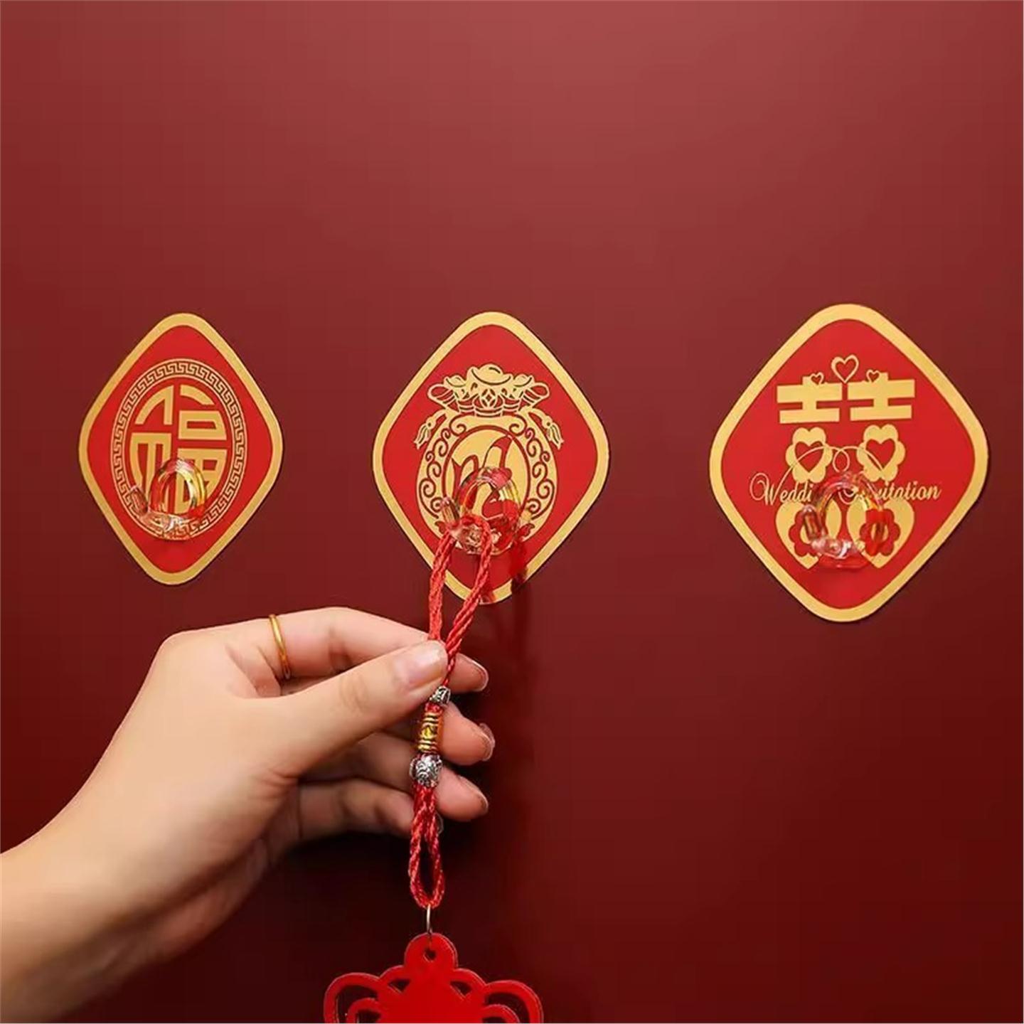 打孔灯笼喜庆强力承重挂钩粘胶免挂挂钩福字粘钩中国小新年结红色